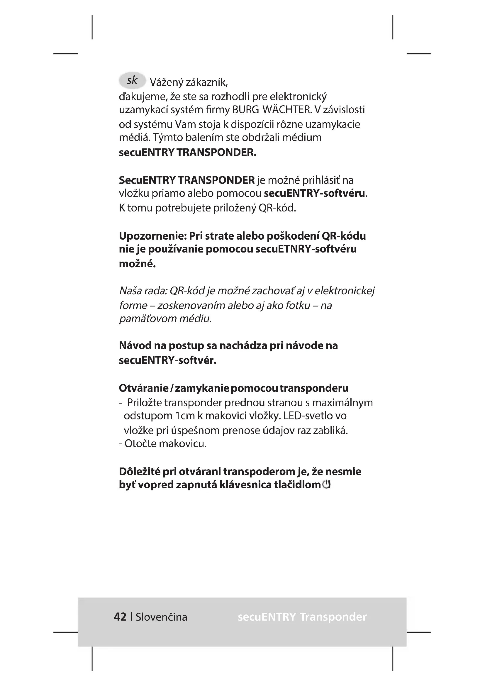 NÁVOD NA OBSLUHU Entry 5710 Transponder Burg Wächter