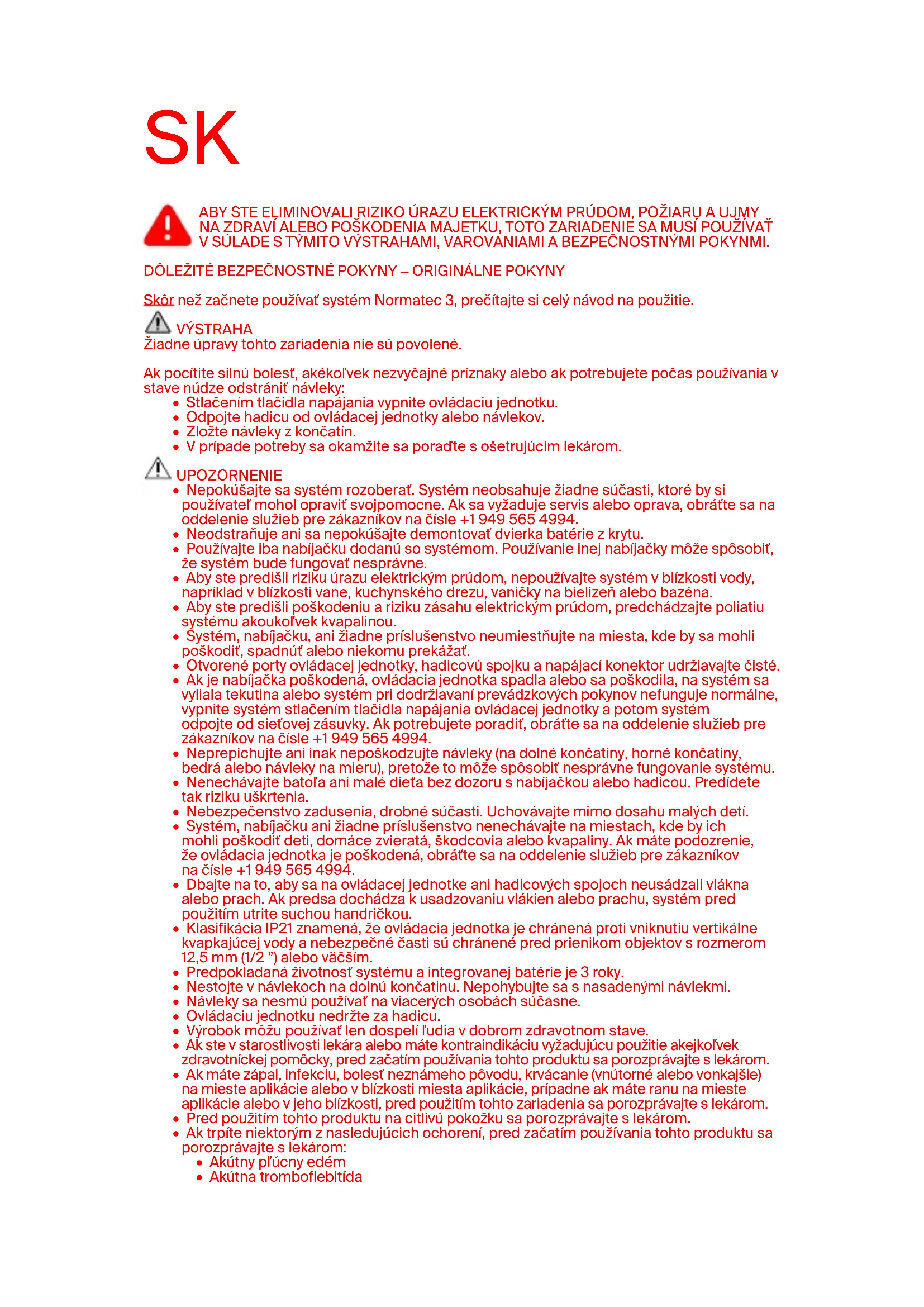 VÝSTRAHA! PRED ZAČATÍM POUŽÍVANIA TOHTO SYSTÉMU: Prečítajte si všetky výstrahy uvedené na začiatku tejto príručky. Ak nerozumiete tomuto návodu na použitie, obráťte sa na spoločnosť Hyperice (tel. +19495654994).