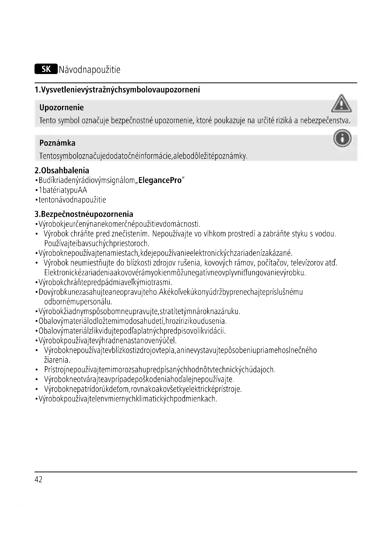 - Výrobok chráňte pred znečistením. Nepoužívajte vo vlhkom prostredí a zabráňte styku s vodou. Používajte iba v suchých priestoroch.