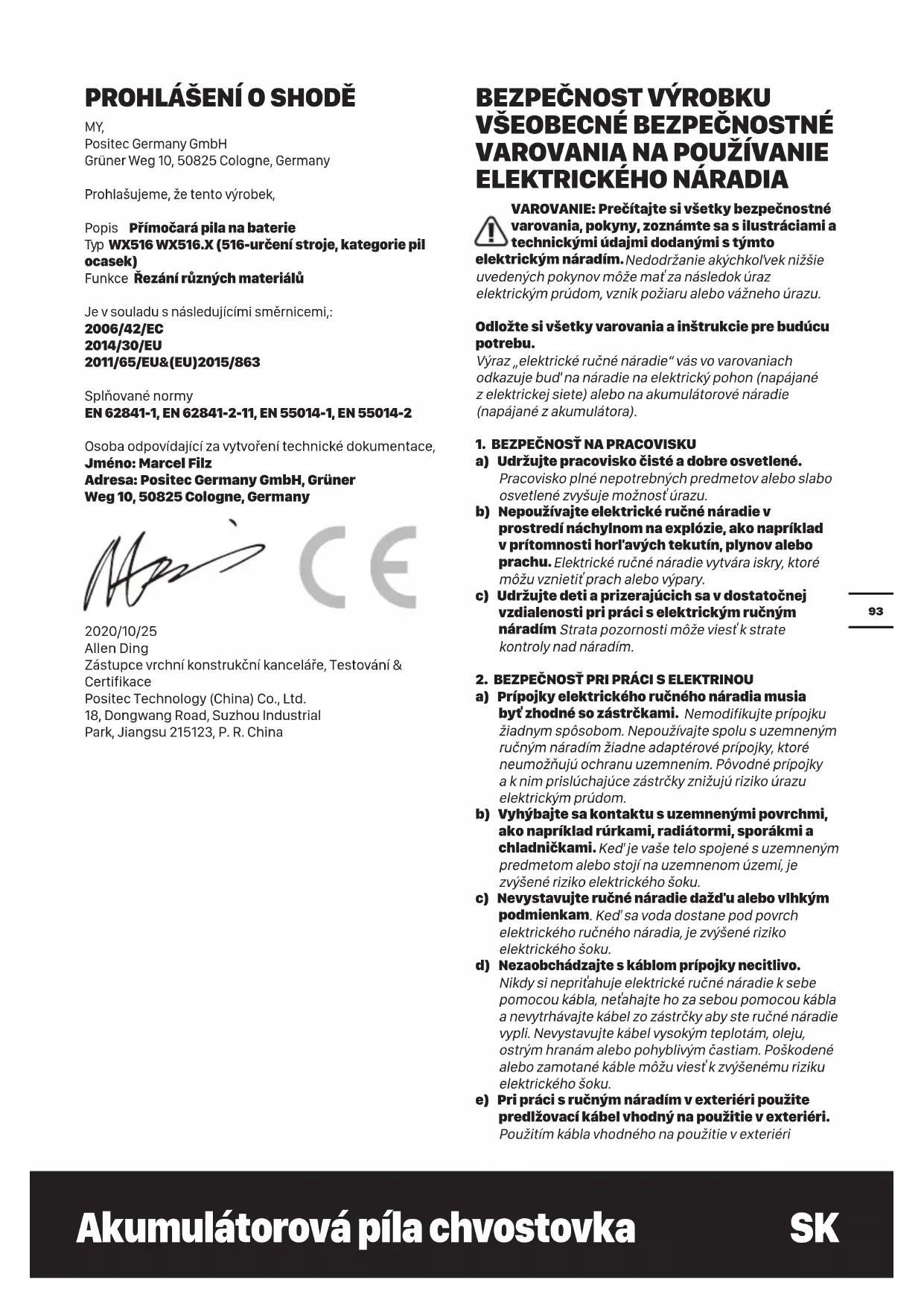 VAROVANIE: Prečítajte si všetky bezpečnostné varovania, pokyny, zoznámte sa s ilustráciami a technickými údajmi dodanými s týmto elektrickým náradím. Nedodržanie akýchkoľvek nižšie uvedených pokynov môže mať za následok úraz elektrickým prúdom, vznik požiaru alebo vážneho úrazu. Odložte si všetky varovania a inštrukcie pre budúcu potrebu. Výraz „elektrické ručné náradie“ vás vo varovaniach odkazuje buď na náradie na elektrický pohon (napájané z elektrickej siete) alebo na akumulátorové náradie (napájané z akumulátora).