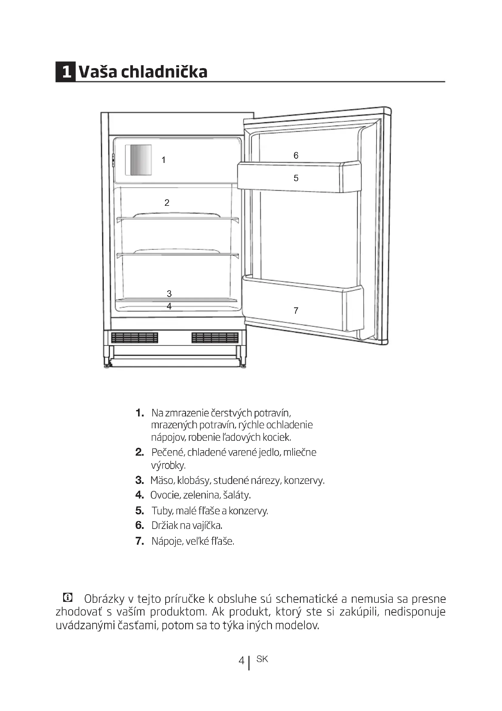 - Táto chladnička je určená len na skladovanie potravín. Nepoužívajte ju na žiadne iné účely.