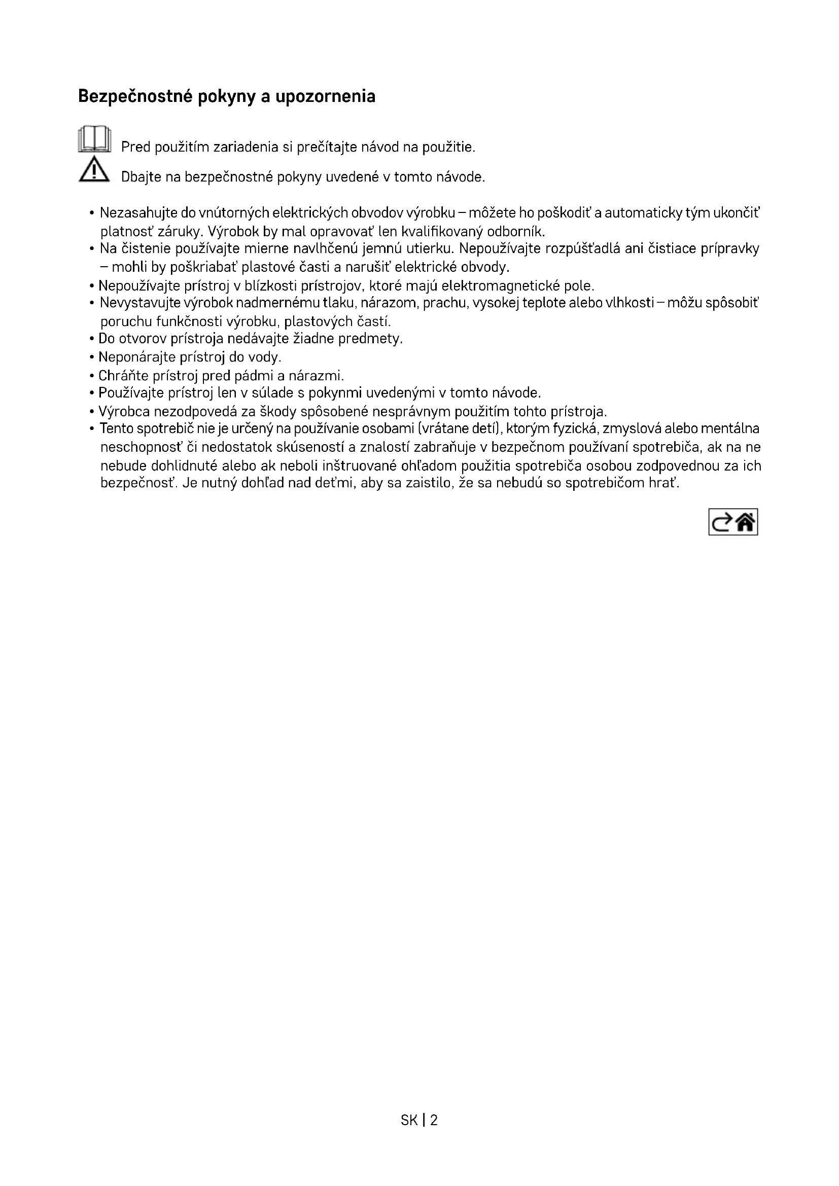 - Používajte prístroj len v súlade s pokynmi uvedenými v tomto návode.