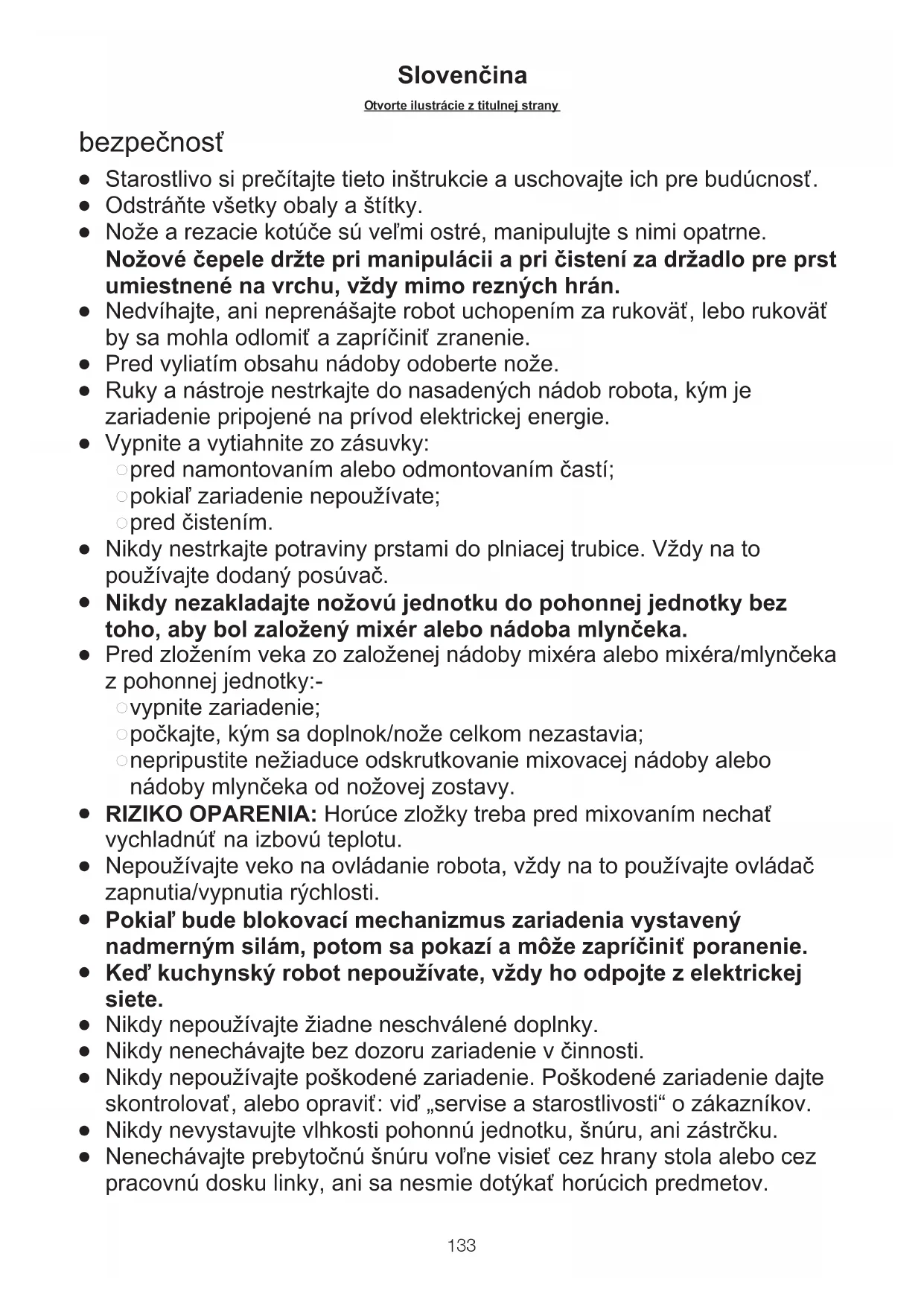 Nože a rezacie kotúče sú veľmi ostré, manipulujte s nimi opatrne. Nožové čepele držte pri manipulácii a pri čistení za držadlo pre prst umiestnené na vrchu, vždy mimo rezných hrán.