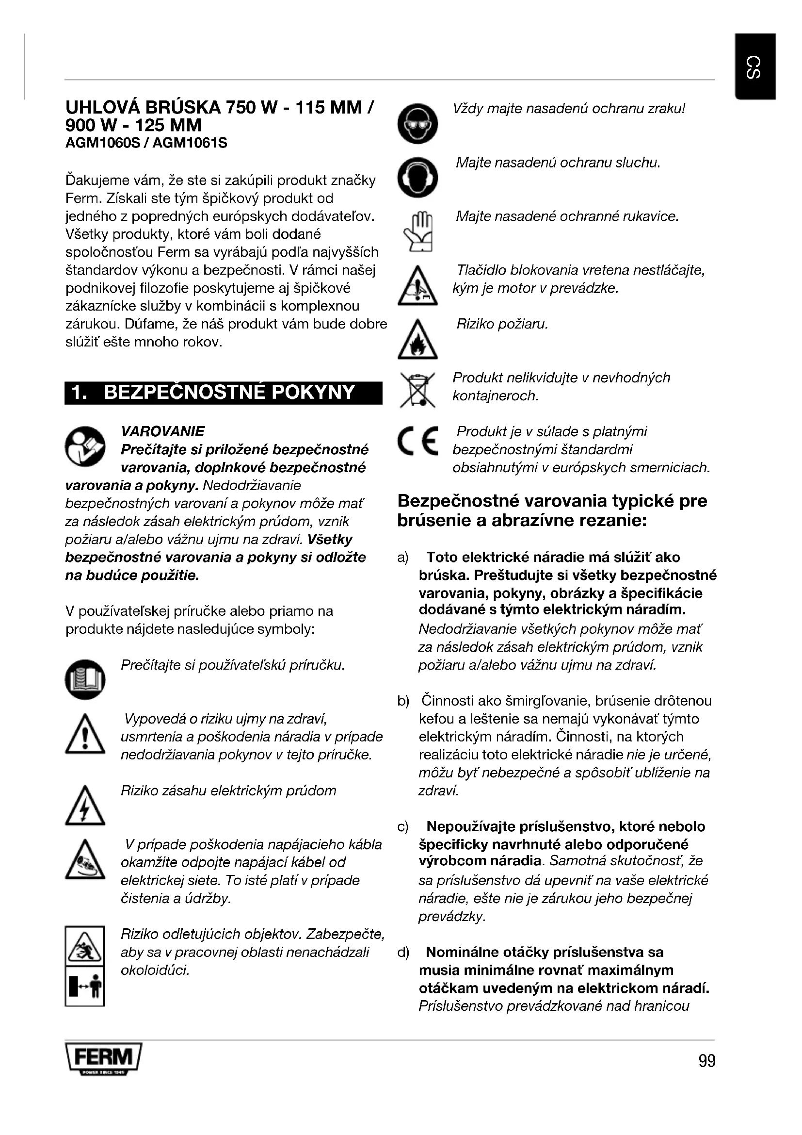 Ďakujeme vám, že ste si zakúpili produkt značky Ferm. Získali ste tým špičkový produkt od jedného z popredných európskych dodávateľov. Všetky produkty, ktoré vám boli dodané spoločnosťou Ferm sa vyrábajú podľa najvyšších štandardov výkonu a bezpečnosti. V rámci našej podnikovej lozoe poskytujeme aj špičkové zákaznícke služby v kombinácii s komplexnou zárukou. Dúfame, že náš produkt vám bude dobre slúžiť ešte mnoho rokov.