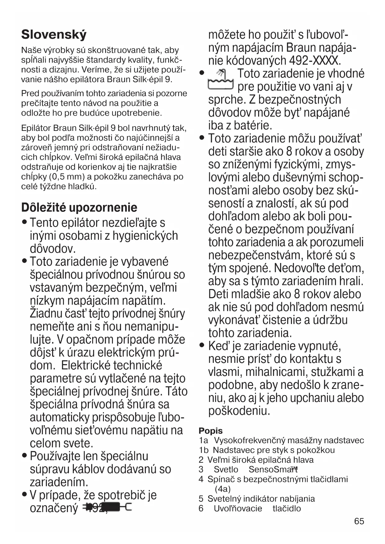 V prípade, že spotrebič je označený 492, môžete ho použiť s ľubovoľ- ným napájacím Braun napája- nie kódovaných 492-XXXX.