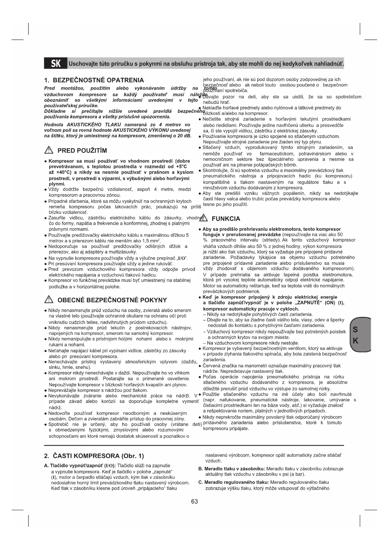 2. ČASTI KOMPRESORA (Obr. 1)