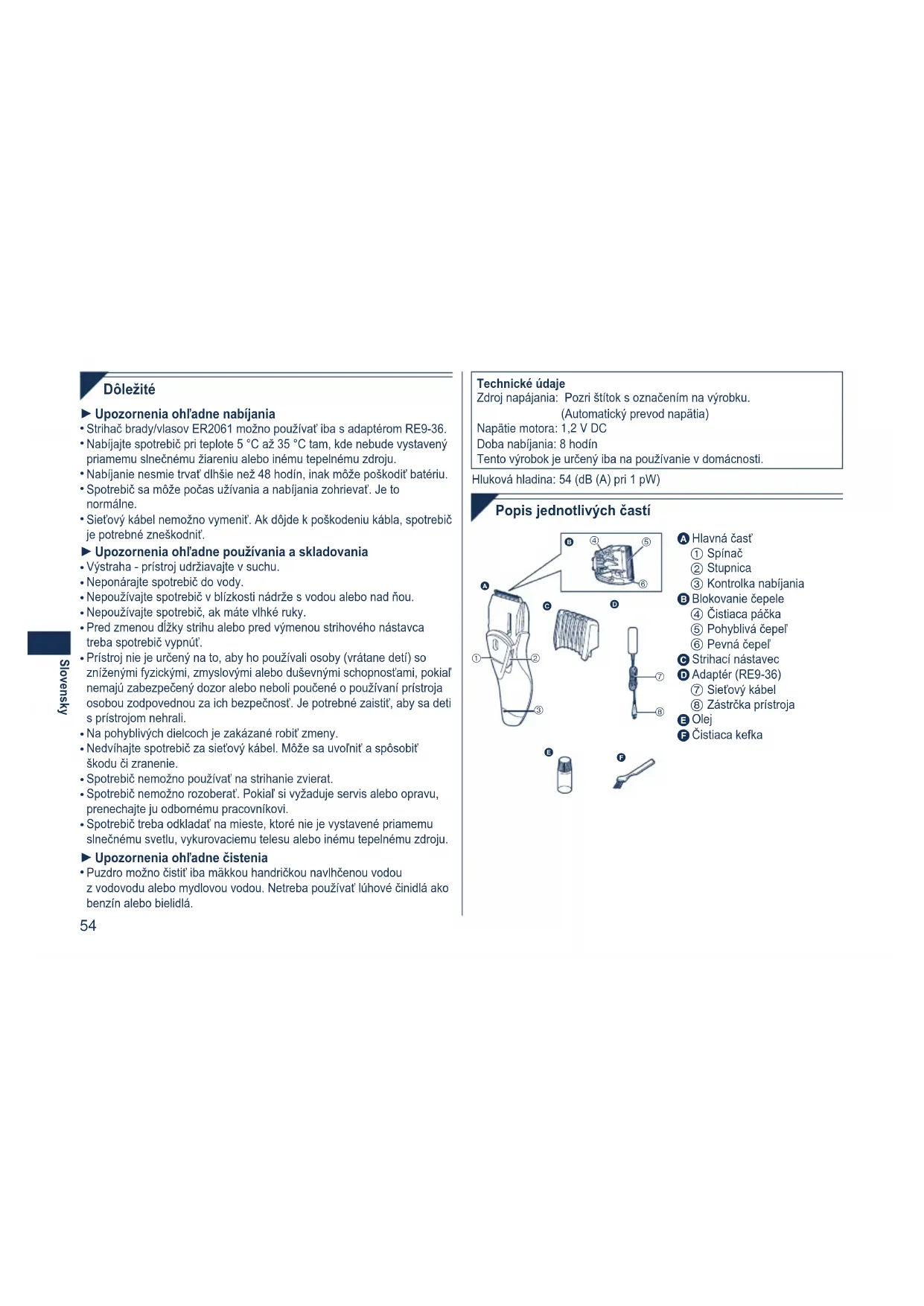 - Strihač brady/vlasov ER2061 možno používať iba s adaptérom RE9-36.