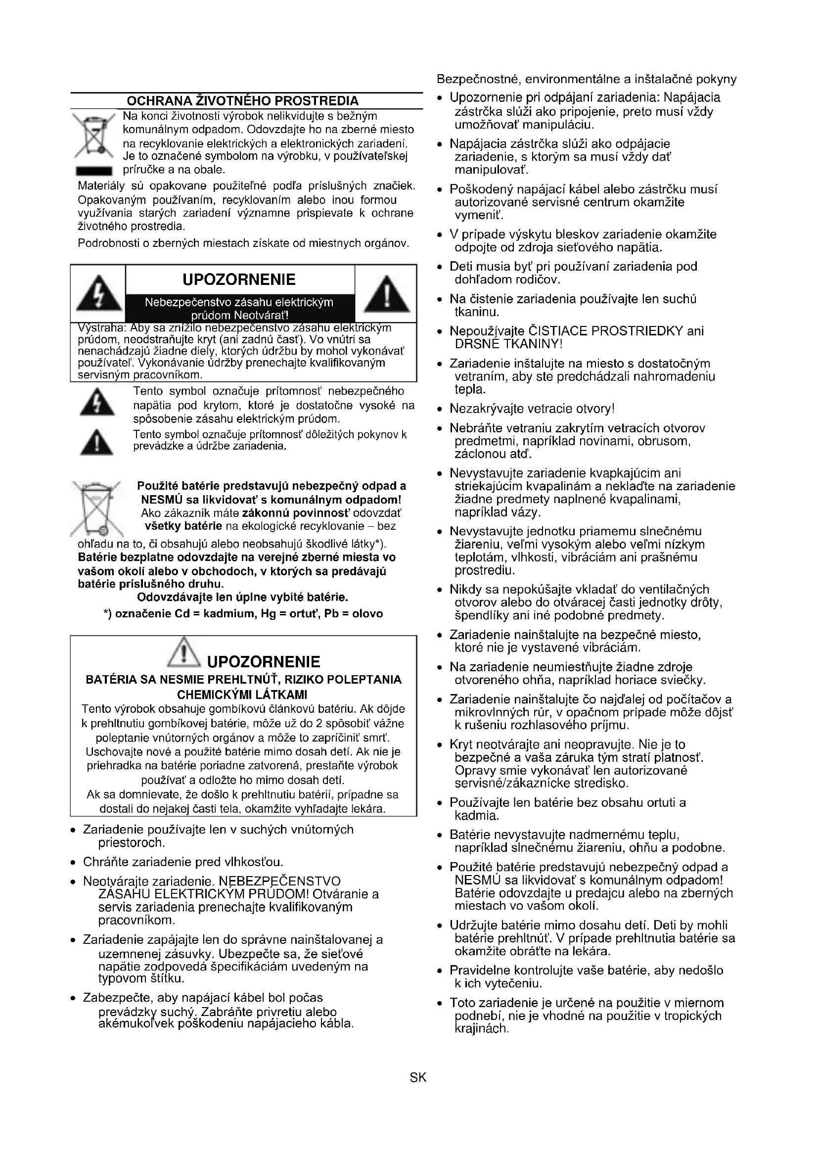 - Použivajte len batarie bez obsahu ortuti a kadmia.