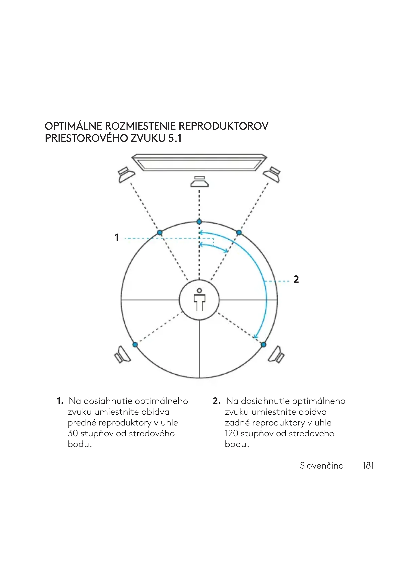 zvuku umiestnite obidva zadné reproduktory vuhle 120stupňov od stredového bodu.182 Slovenčina