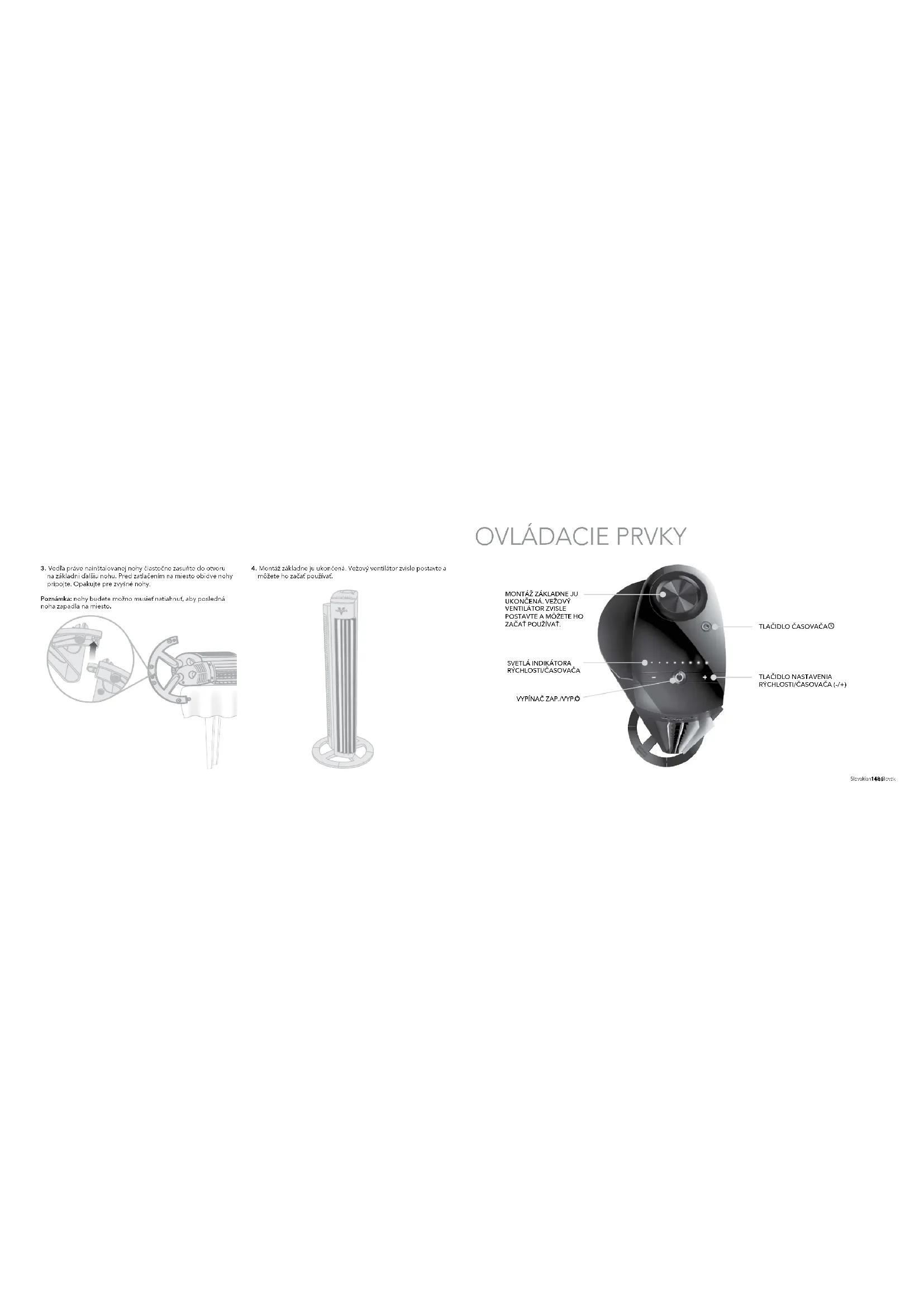 podržte na 4 sekundy alebo stláčajte , kým sa nerozsvieti všetkých osem svetiel indikátora, potom ešte raz stlačte . Všetky svetlá budú svietiť na bielo indikujúc, že časovač je vypnutý. POUŽÍVANIE Pred používaním skontrolujte, či zariadenie nie je viditeľne poškodené. Ak existujú dôkazy, že veža je poškodená, NEPOUŽÍVAJTE JU. Ak sa nájde nejaké poškodenie, obráťte sa na autorizované servisné stredisko. Informácie nájdete na zadnej strane.
