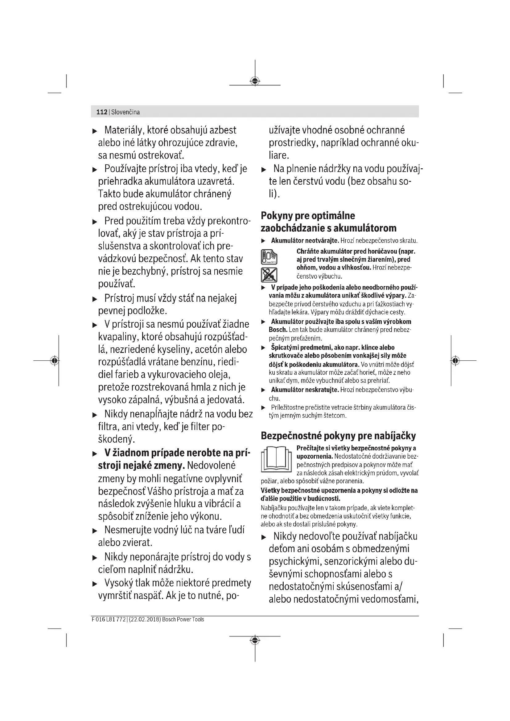 Chrante akumulator pred horucavou (napr. aj pred trvalym slnecnym ziarenim), pred ohnom, vodou a vlhkestou. Hrozi nebezpe-censtvo vybuchu.