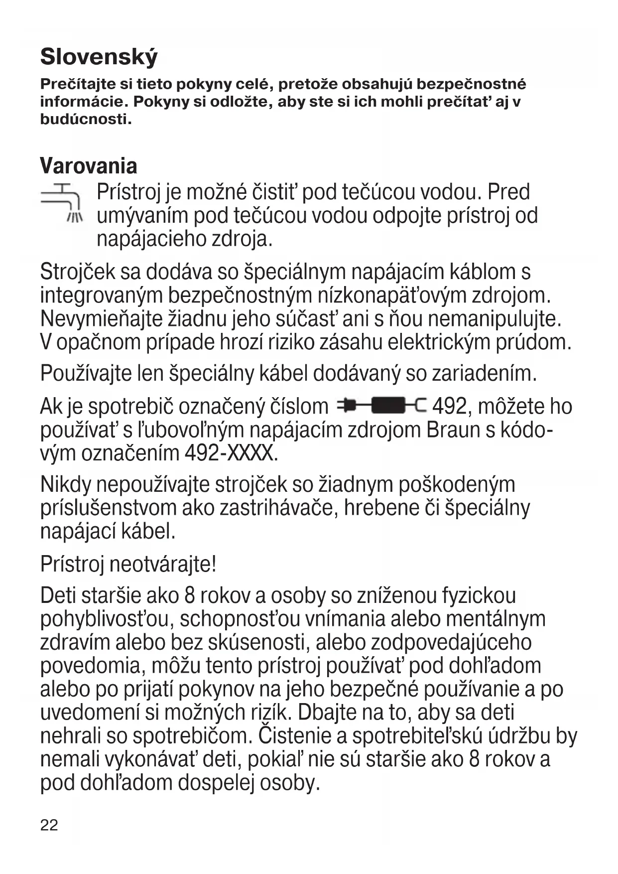 - nie pri všetkých modeloch Elektrické špecifikácie nájdete na štítku špeciálneho napájacieho kábla. Nabíjanie Odporúčaná okolitá teplota pri nabíjaní je 5 °C až 35 °C. Pri nadmerne nízkych alebo vysokých teplotách sa batéria nemusí nabiť správne alebo vôbec. Odporúčaná okolitá teplota pri zastrihávaní je 15 °C až 35 °C. Nevystavujte holiaci strojček dlhší čas teplotám vyšším ako 50 °C.
