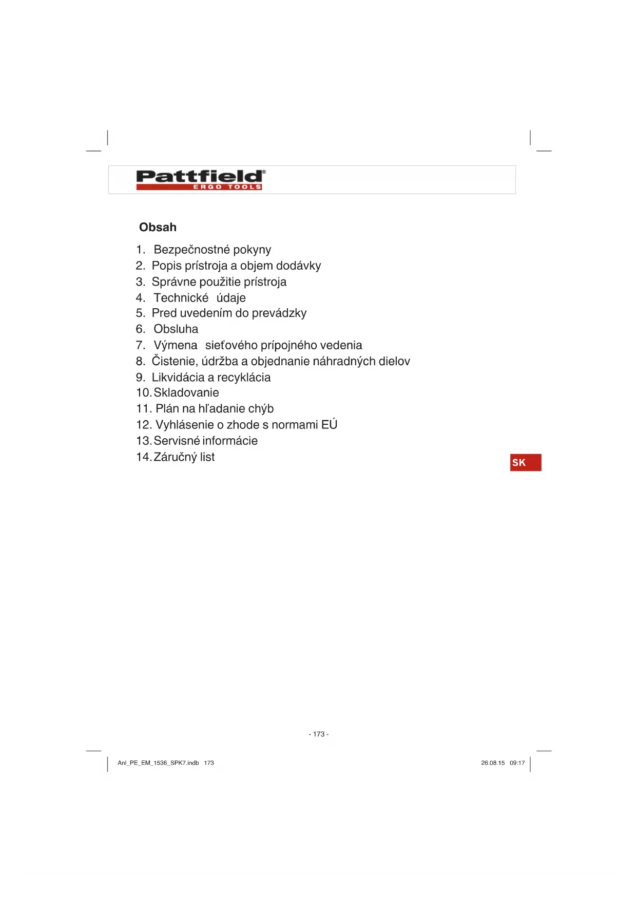 NÁVOD NA OBSLUHU PEEM 1536 Pattfield
