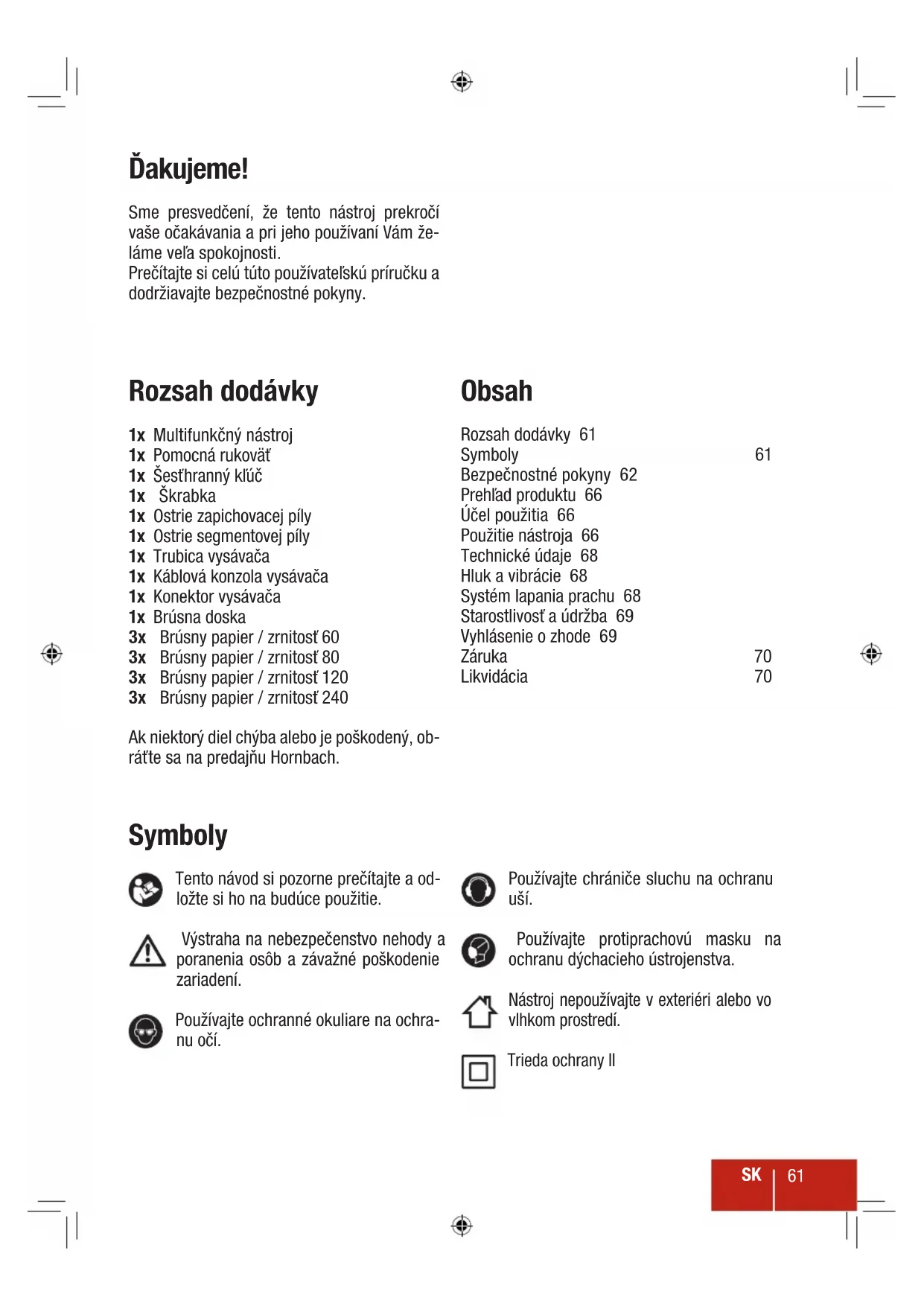 BEZPEÇNOSTNÉ VYSTRAHY SPECIFICKE PRE ZARIADENIE - MULTIFUNKÇNE NASTROJE