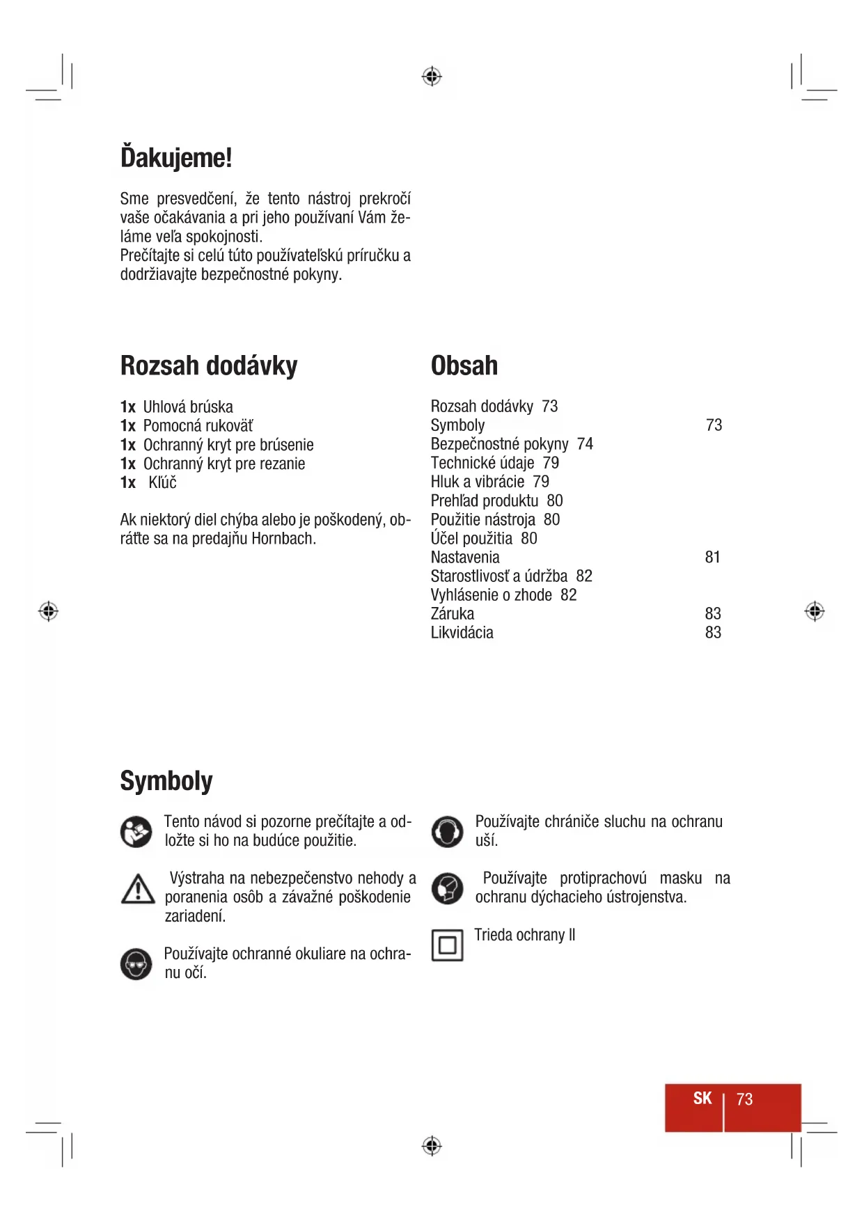 Ak chcete uplatniť záručné reklamácie, obrátte sa na vašu predajňu Hornbach a preukázte sa originálom účtenky či iným dokladom o kúpe. Preto si tento doklad sta-