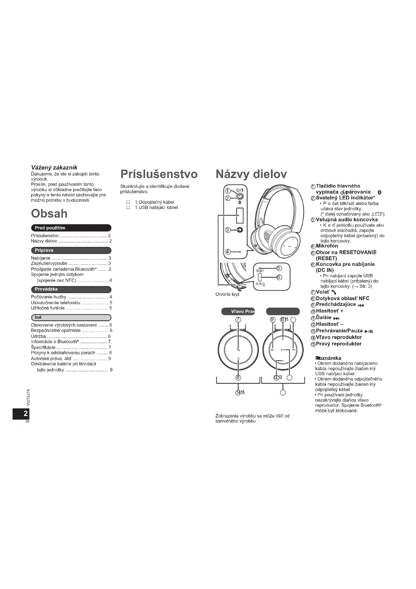 - Odstránenie batérie pri likvidácii tejto jednotky Vážený zákazník Ďakujeme, že ste si zakúpili tento výrobok. Prosím, pred používaním tohto výrobku si dôkladne prečítajte tieto pokyny a tento návod uschovajte pre možnú potrebu v budúcnosti. Príslušenstvo Zobrazenia výrobku sa môžu líšiť od samotného výrobku. p. 9