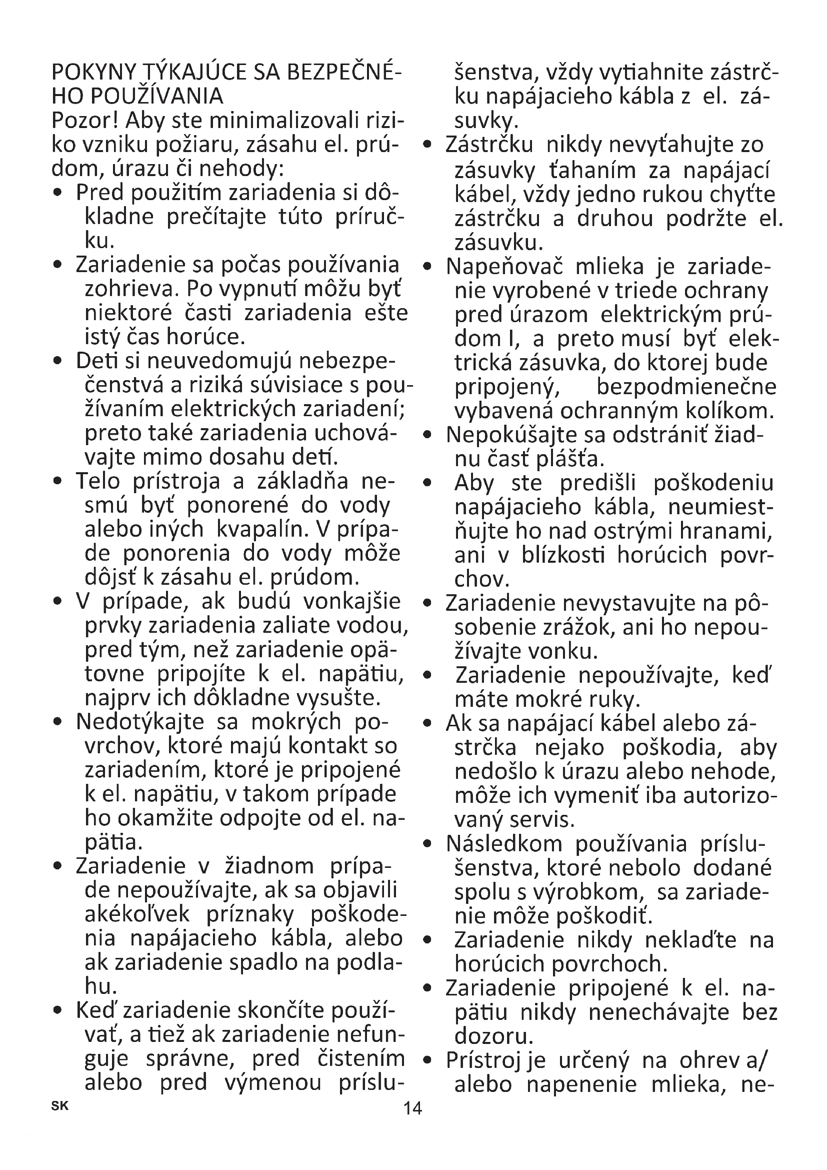 - Prístroj je určený na ohrev a/ alebo napenenie mlieka, ne- SK15 používajte ho na iné účely.