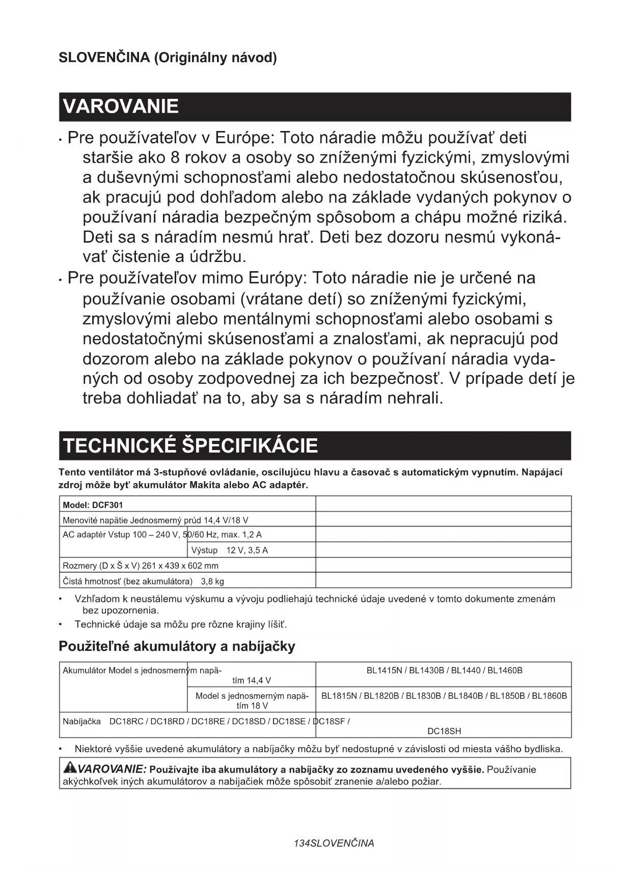 - OriginálnabatériaanabíjačkaMakita POZNÁMKA:Niektorépoložkyzozoznamumôžubyť súčasťoubalenianástrojovvoformeštandardného príslušenstva.Rozsahtýchtopoložiekmôžebyťv každejkrajineodlišný.141 ČESKY ČESKY (Původní návod k používání) VAROVÁNÍ