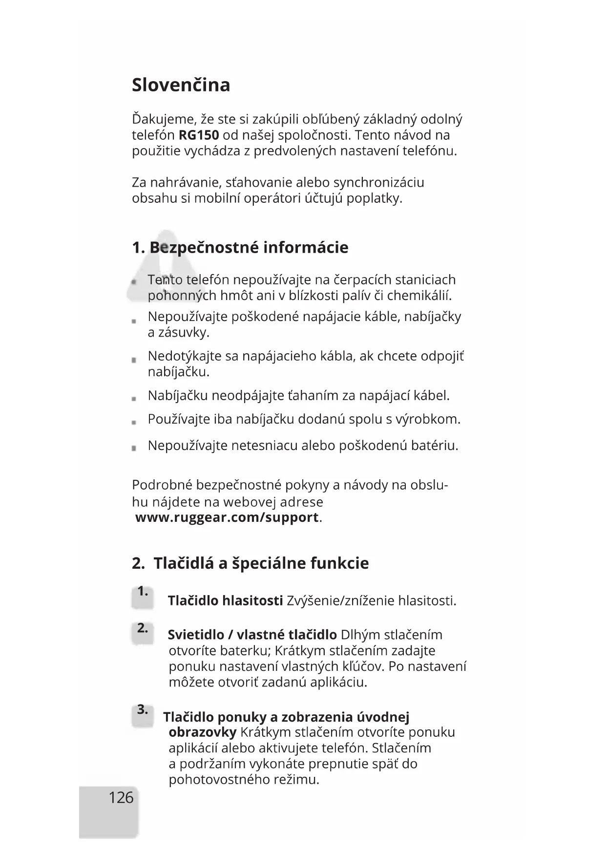RG150 - Telefón RugGear - Bezplatný návod na obsluhu