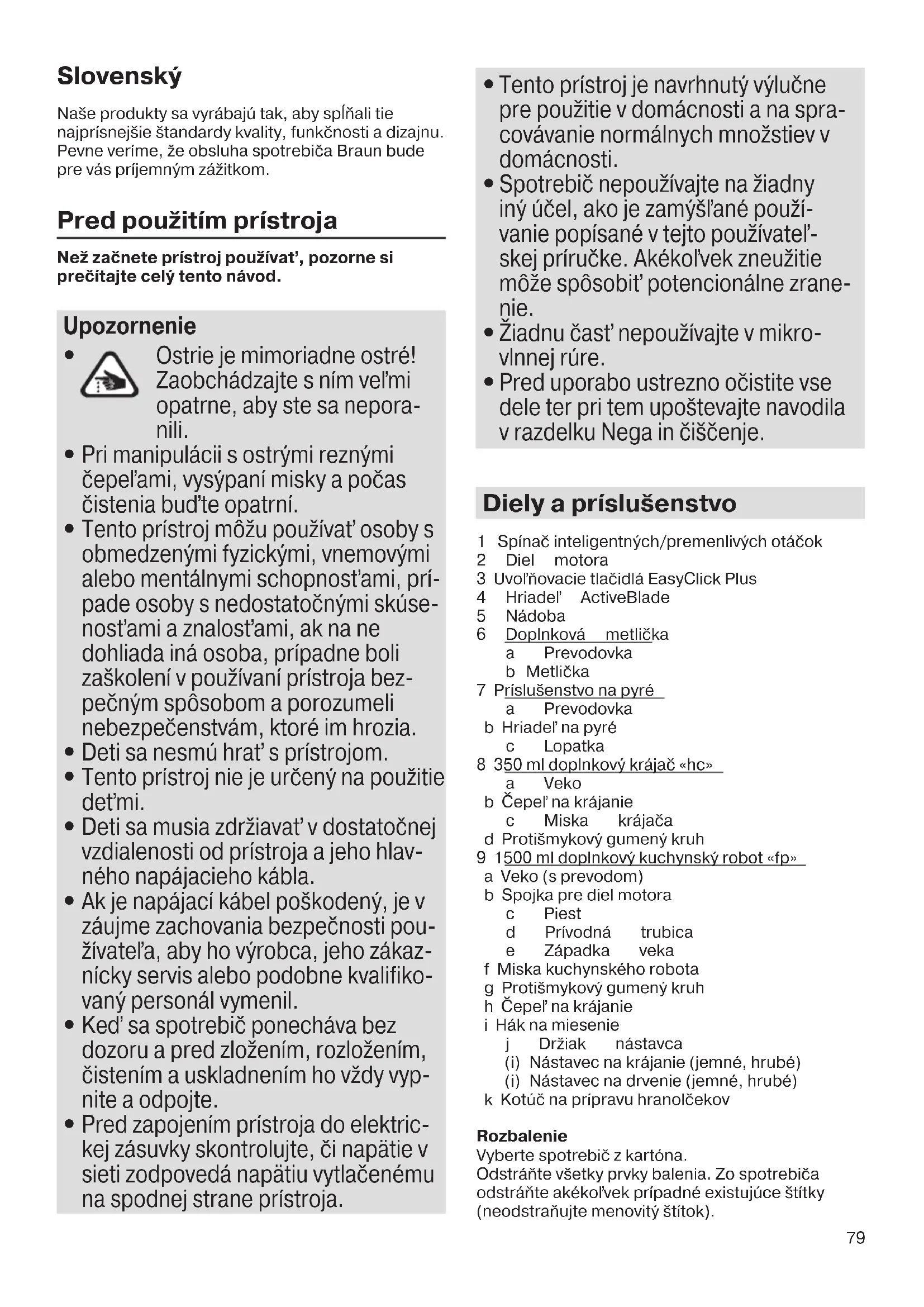 Ostrie je mimoriadne ostré! Zaobchádzajte s ním veľmi opatrne, aby ste sa nepora- nili.