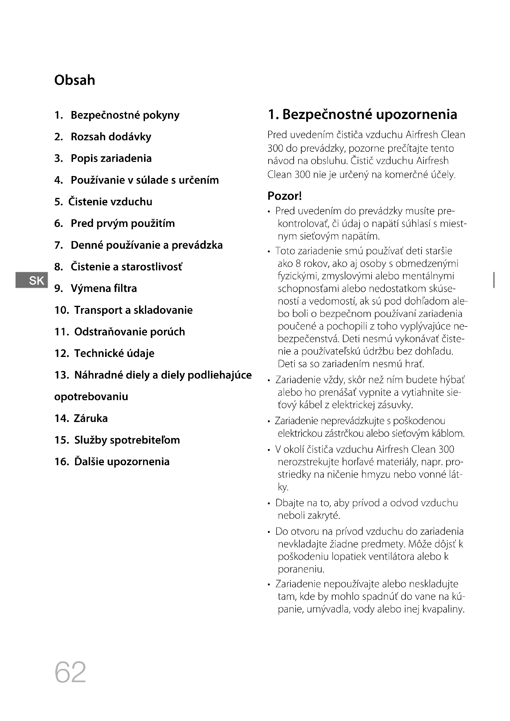 - Na čistič vzduchu Airfresh Clean 300 neuk- ladajte žiadne predmety a nikdy naň nesa- dajte.