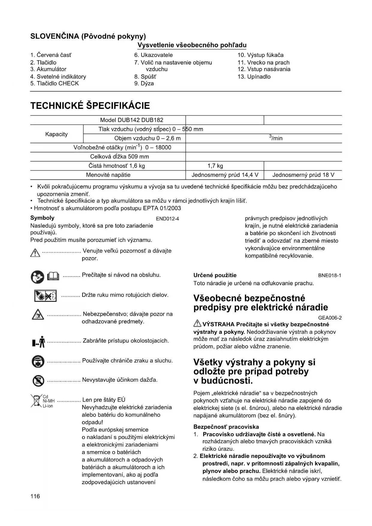 - Pred použitim akumulátora si prečitajte všetkyPokyny a výstržné oznacenia na (1) nabijačke, (2) akumulátore a (3) vyrobku, ktorý používa akumulátor.