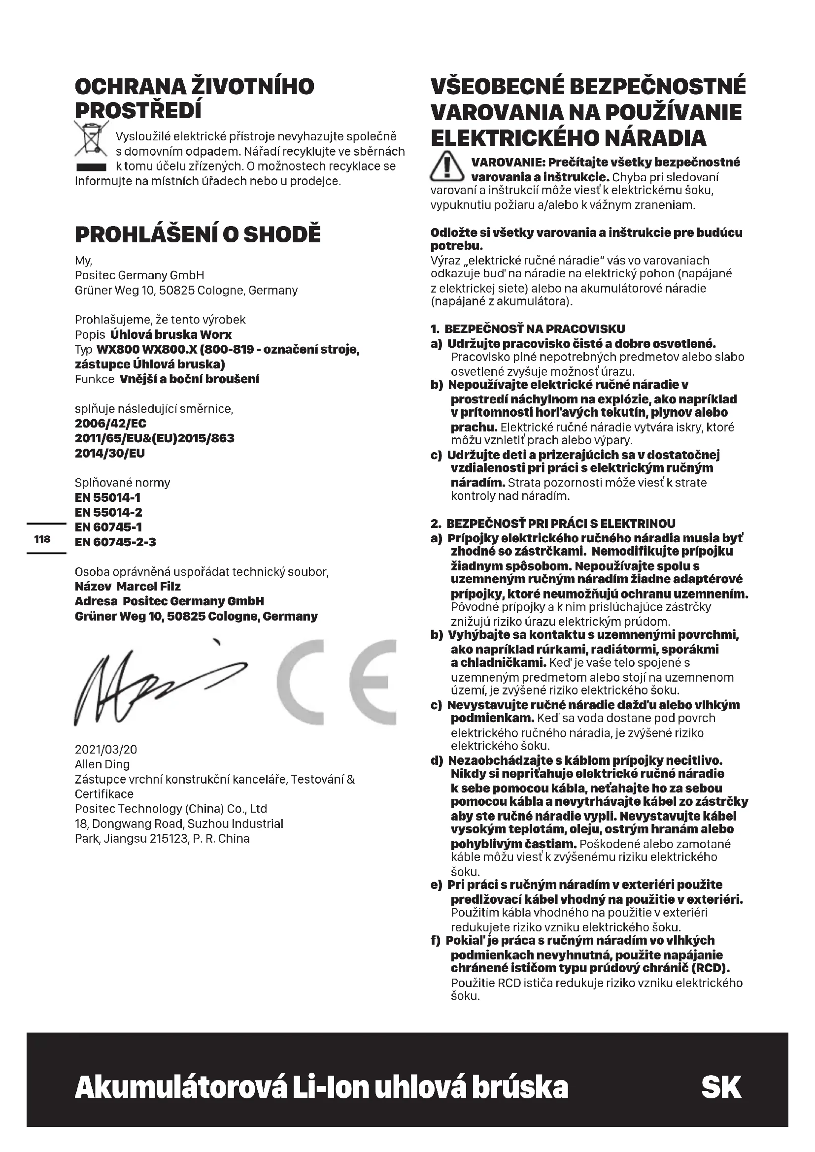 BEZPEČNOSTNÉ VÝSTRAHY SPOLOČNÉ PRE ČINNOSTI BRÚSENIA A ROZBRUSOVANIA: a. Toto náradie je určené na fungovanie ako brúska a tiež náradie na rezanie. Prečítajte si všetky výstrahy, pokyny, prezrite si obrázky a technické parametre poskytované s touto brúskou. Neschopnosť dodržiavať varovania a pokyny môže viesť k elektrickému šoku, vypuknutiu požiaru a/alebo k vážnym zraneniam. b. Pomocou tohto elektrického náradia vám neodporúčame vykonávať činnosti, ako je brúsenie, brúsenie drôtenou kefou ani leštenie. Činnosti, pre ktoré nebolo elektrické náradie navrhnuté, môžu byť rizikové a dôsledkom môže byť osobné poranenie. c. Používajte iba výrobcom konštruované a odporúčané príslušenstvo. Skutočnosť, že sa príslušenstvo dá namontovať na vašu brúsku,Akumulátorová Li-Ion uhlová brúska