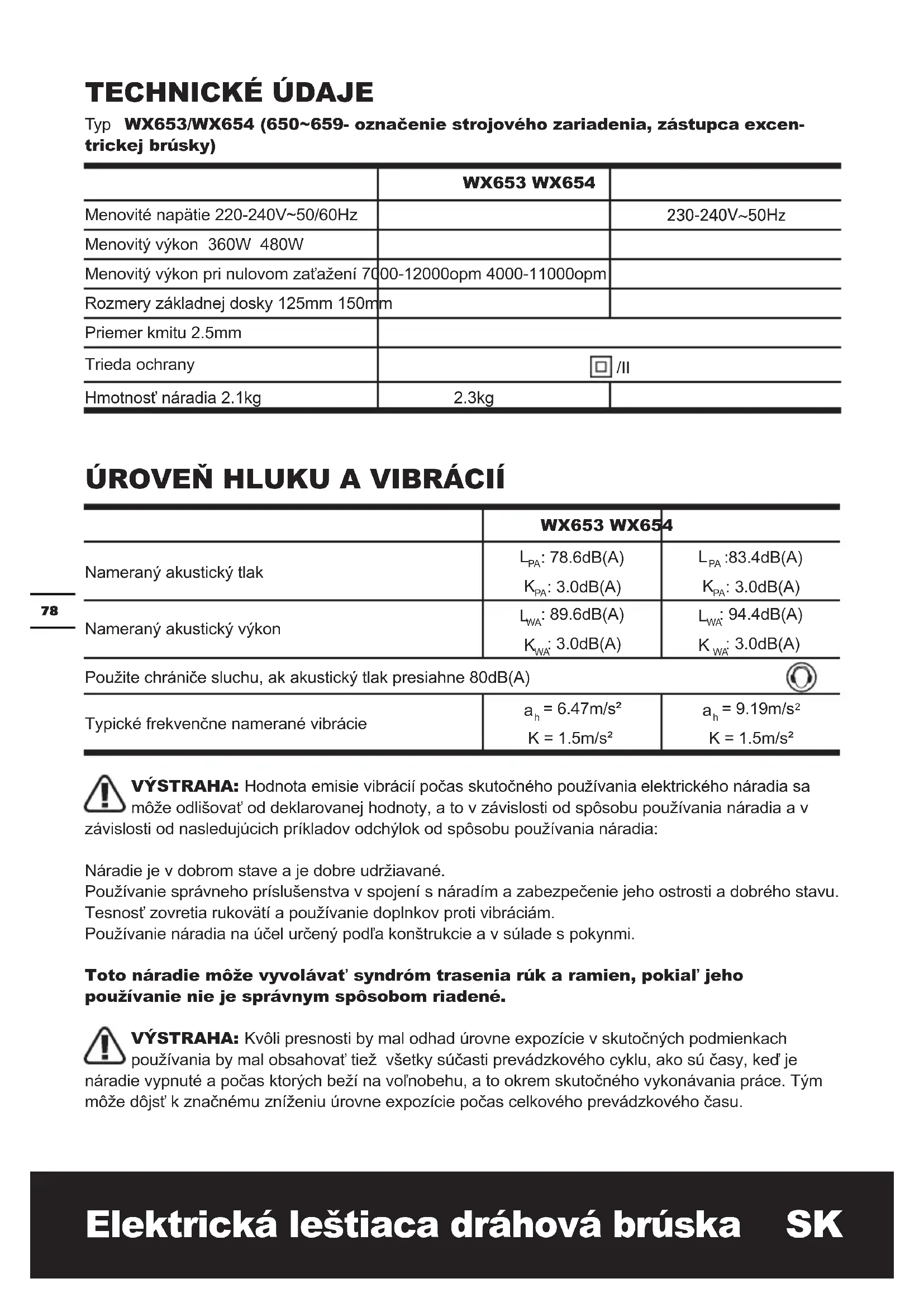 Typ WX653/WX654 (650\~659- označenie strojového zariadenia, zástupca excentrickej brúsky)