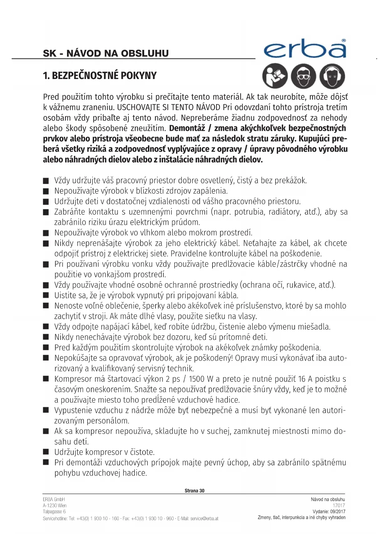 17017 - Kompresor Erba - Bezplatný návod na obsluhu