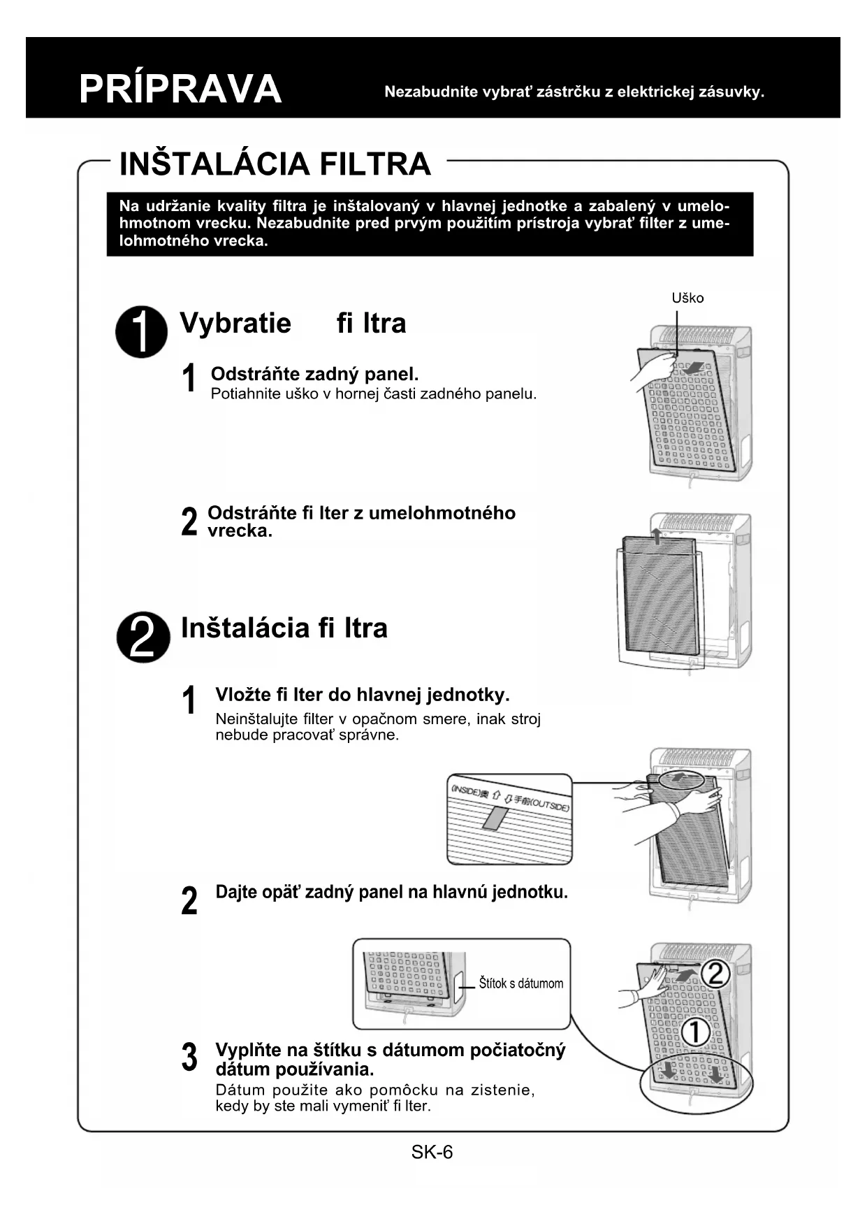 Pozrite si strany SK-6 a SK-11, 12 pre pokyny k inštalácii filtra pri jeho výmene.