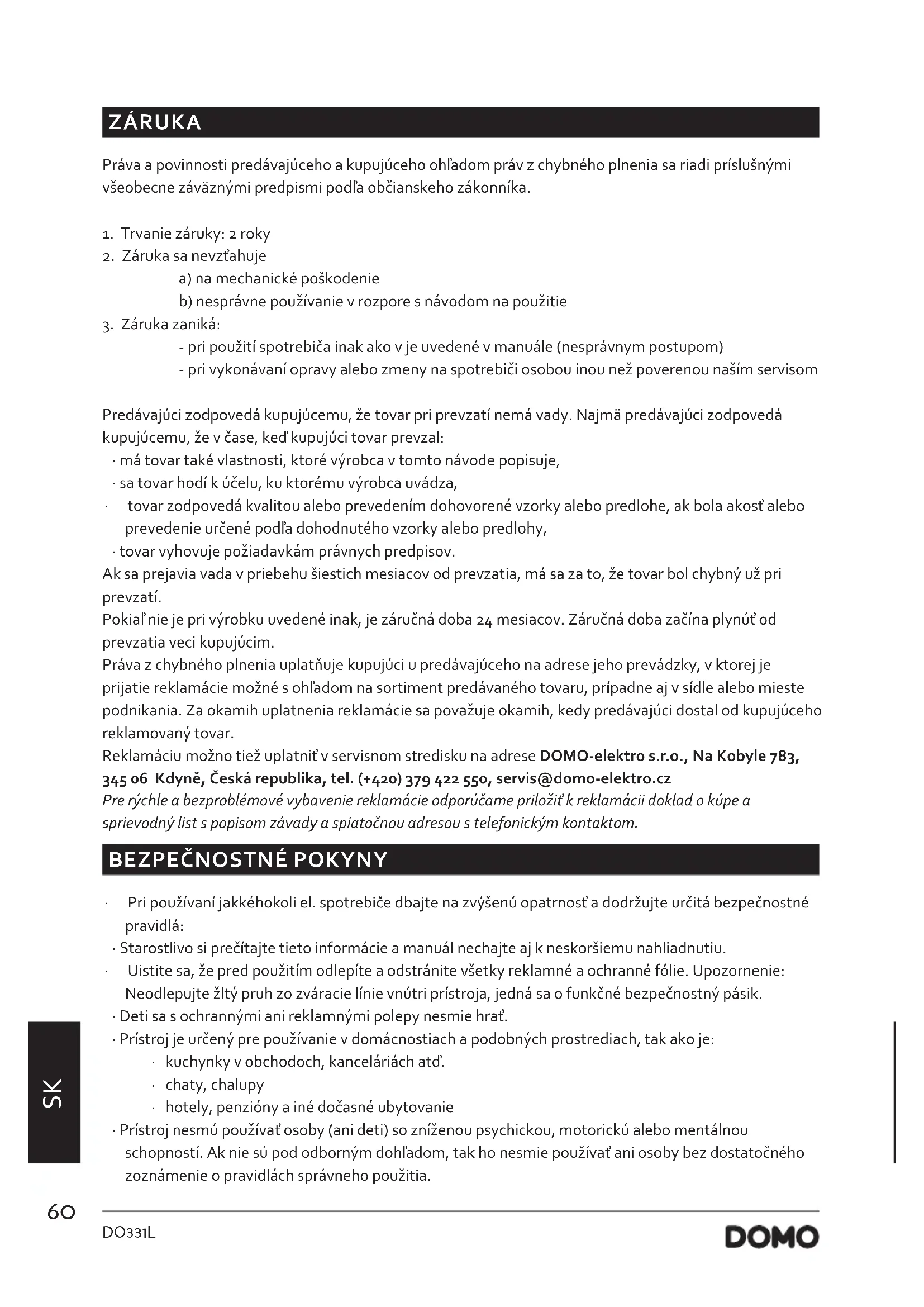 NÁVOD NA OBSLUHU DO331L DOMO