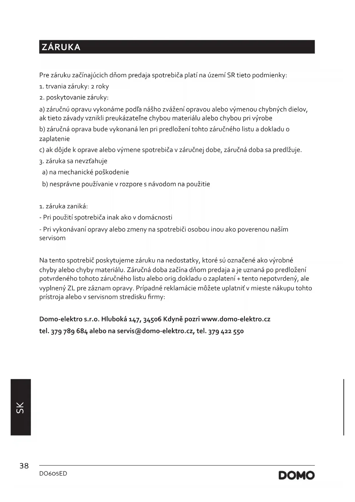NÁVOD NA OBSLUHU DO605ED DOMO