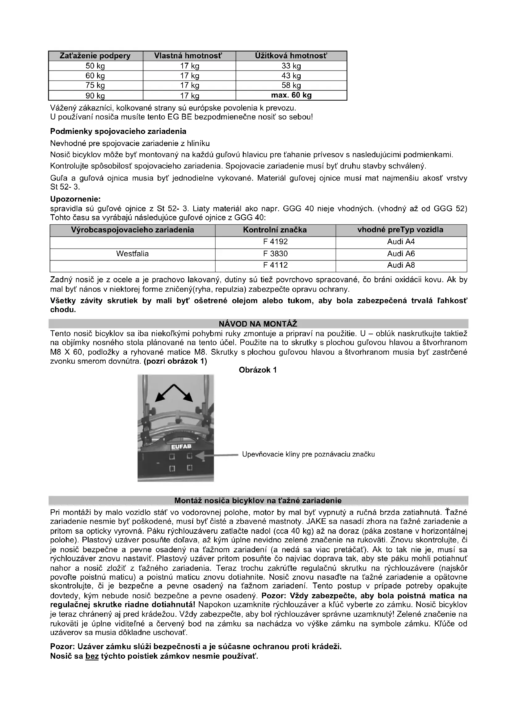 Jake Black - Držiak na bicykel Eufab - Bezplatný návod na obsluhu