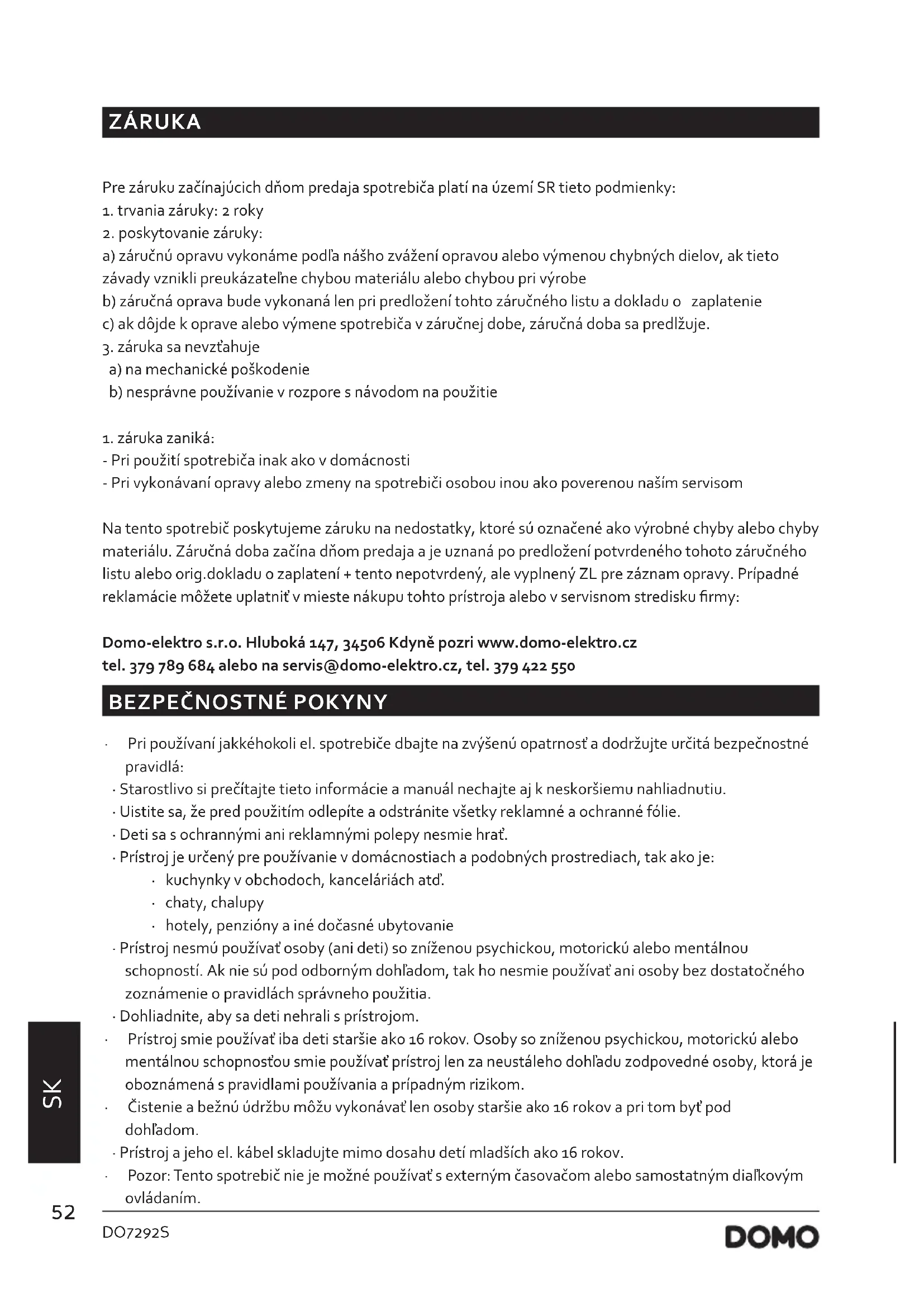 NÁVOD NA OBSLUHU DO7292S DOMO