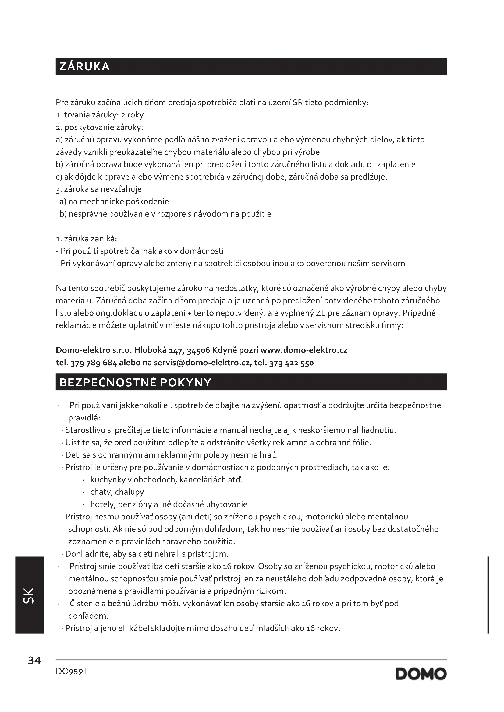 NÁVOD NA OBSLUHU DO959T DOMO