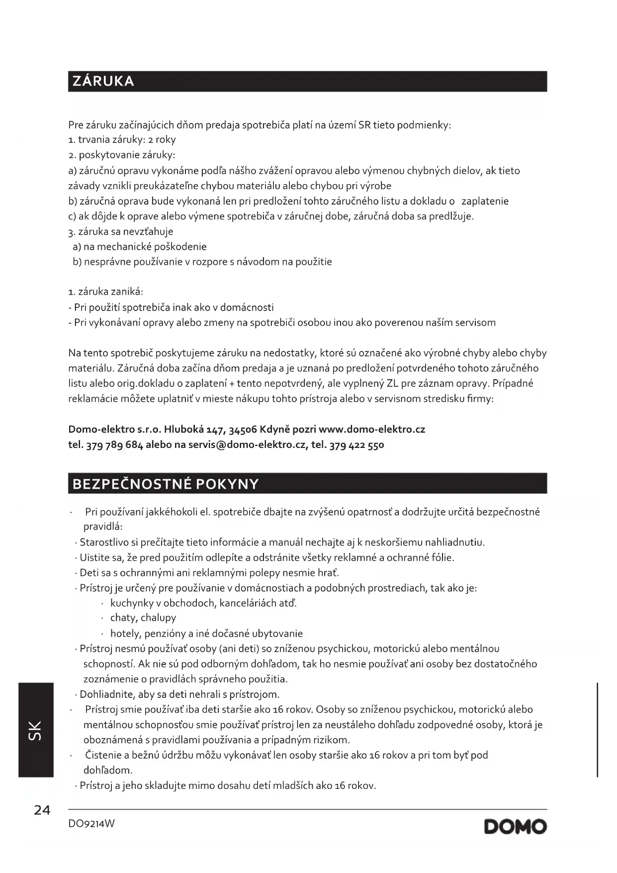 NÁVOD NA OBSLUHU DO9214W DOMO