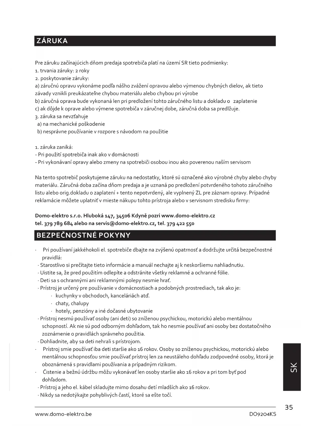 NÁVOD NA OBSLUHU DO9204KS DOMO