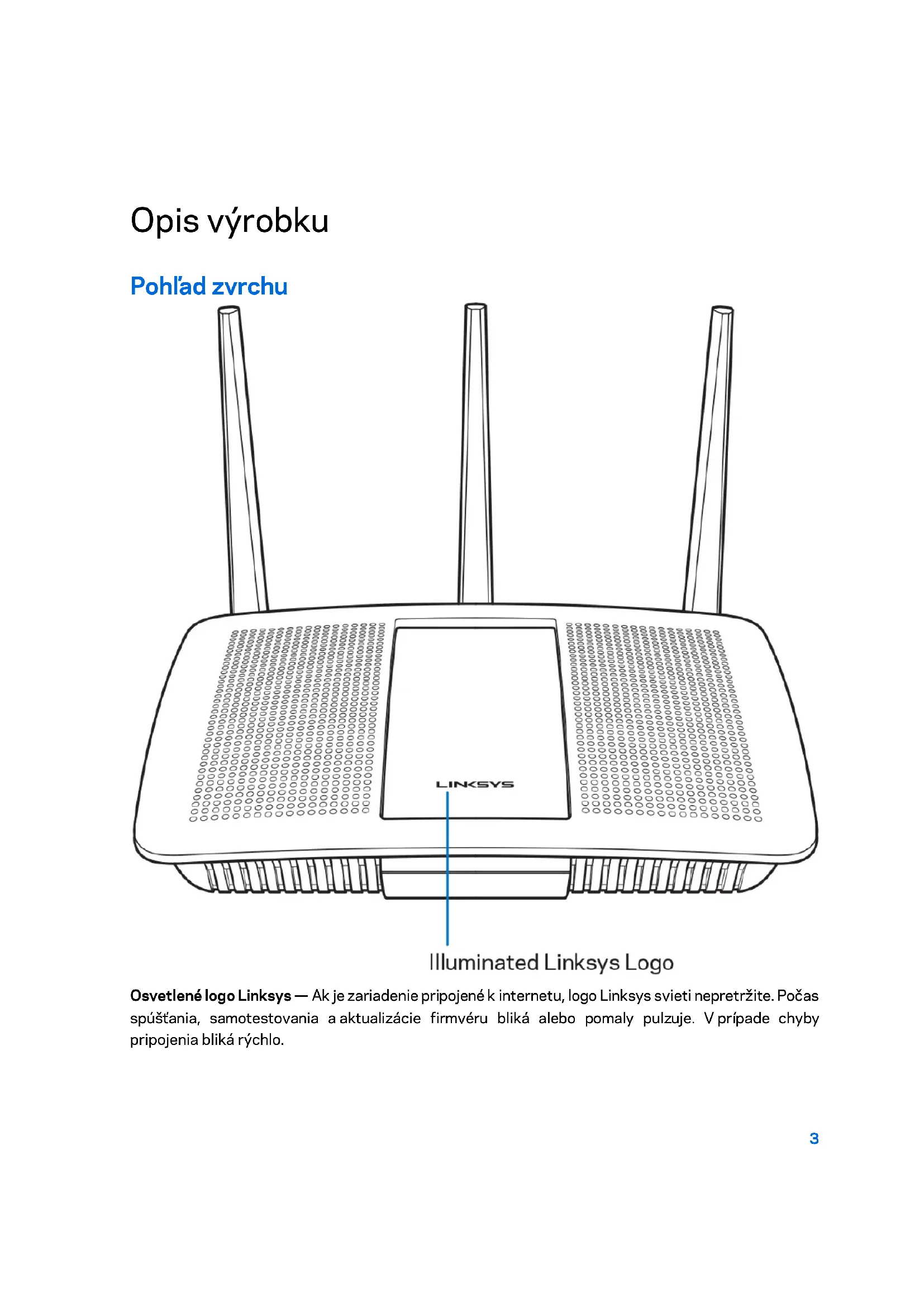 Linksys.com/support/EA7300 (dokumentácia, súbory na prevzatie, časté otázky, technická podpora, živé konverzácie, fóra) Poznámka — Licencie a upozornenia týkajúce sa softvéru tretích strán si môžete pozrieť na lokalite http://support.linksys.com/en-us/license. S otázkami alebo požiadavkami týkajúcimi sa zdrojového kódu GPL sa obráťte na http://support.linksys.com/en-us/gplcodecenter. Inštalácia smerovača