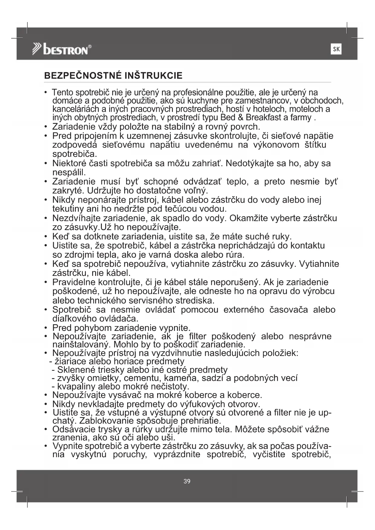 Ecosenzo Plus ABL930SR - Vysávač BESTRON - Bezplatný návod na obsluhu