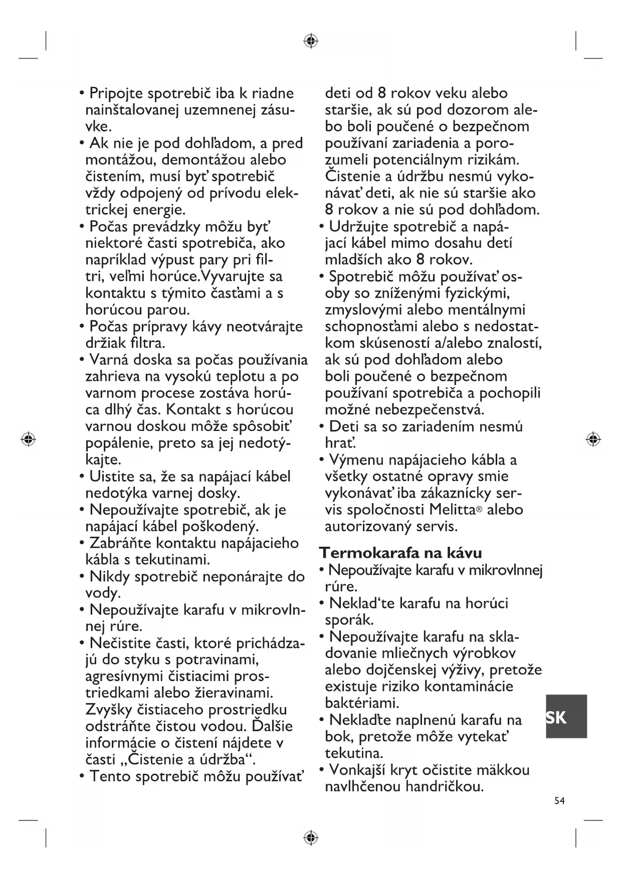 - vmoteloch,hoteloch,pen- ziónoch a ďalších ubytovacích zariadeniach Akékoľvek iné použitie sa po- važuje za nesprávne a môže viesť k zraneniu osôb alebo poškode- niu majetku. Melitta