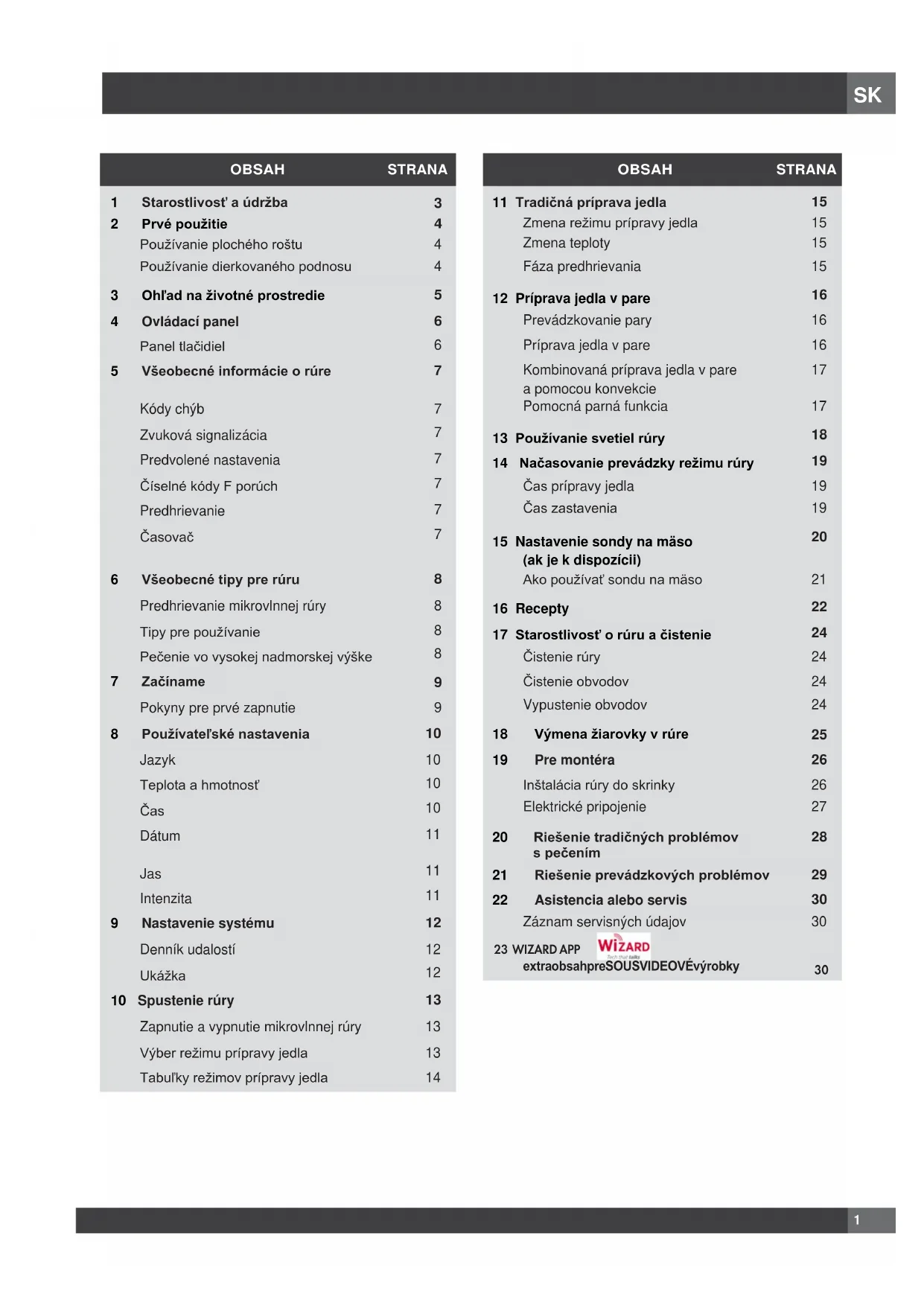 Hoci je vnútorný priestor rúry vyrobený z mimoriadne kvalitnej ocele, výsledkom nesprávne údržby môže byť korózia. Mikrovlnná rúra sa musí čistiť pravidelne a všetky zvyšky jedla je potrebné odstrániť. Rúru nečistite hneď po vybratí jedla, pretože zvyšné kvapky pary sú stále veľmi horúce (nebezpečenstvo popálenia). Skontrolujte, či je na displeji uvedená nízka zvyšková teplota, resp. žiadna. Keď je rúra zapnutá, buďte pri otváraní dvierok opatrný, pretože unikajúca para môže spôsobiť popáleniny. Ak sa preruší elektrické napájanie a znova sa zapne, treba vyprázdniť okruh rúry, aj keď by v ňom nemala byť žiadna voda. Na čistenie skla dvierok rúry nepoužívajte drsné abrazívne prostriedky ani ostré kovové škrabky, pretože by mohli poškriabať povrch a spôsobiť rozbitie skla. Pri čistení dávajte pozor, aby sa do vnútra spotrebiča nedostala voda. Používajte len mierne namočené handričky. Nikdy nestriekajte vodu do vnútra spotrebiča ani na jeho vonkajší povrch. Nepoužívajte parné čistiace pomôcky, pretože voda, ktorá sa dostane dovnútra, môže spotrebič poškodiť. Nepoužívajte spotrebič na vykurovanie alebo zvlhčovanie miestnosti. Používajte detskú poistku. Spotrebič sa musí inštalovať a používať pri okolitej teplote v rozsahu 5 až 35 °C. Ak existuje riziko mrazu, zvyšková voda v čerpadlách by mohla zamrznúť a poškodiť ich. Používajte len tepelnú sondu odporúčanú pre túto rúru. Potravinová sonda je príslušenstvo, ktoré je k dispozícii len pri niektorých verziách výrobku. Sada 6 gastronomických nádob patrí medzi príslušenstvo, ktoré je k dispozícii na vyžiadanie.