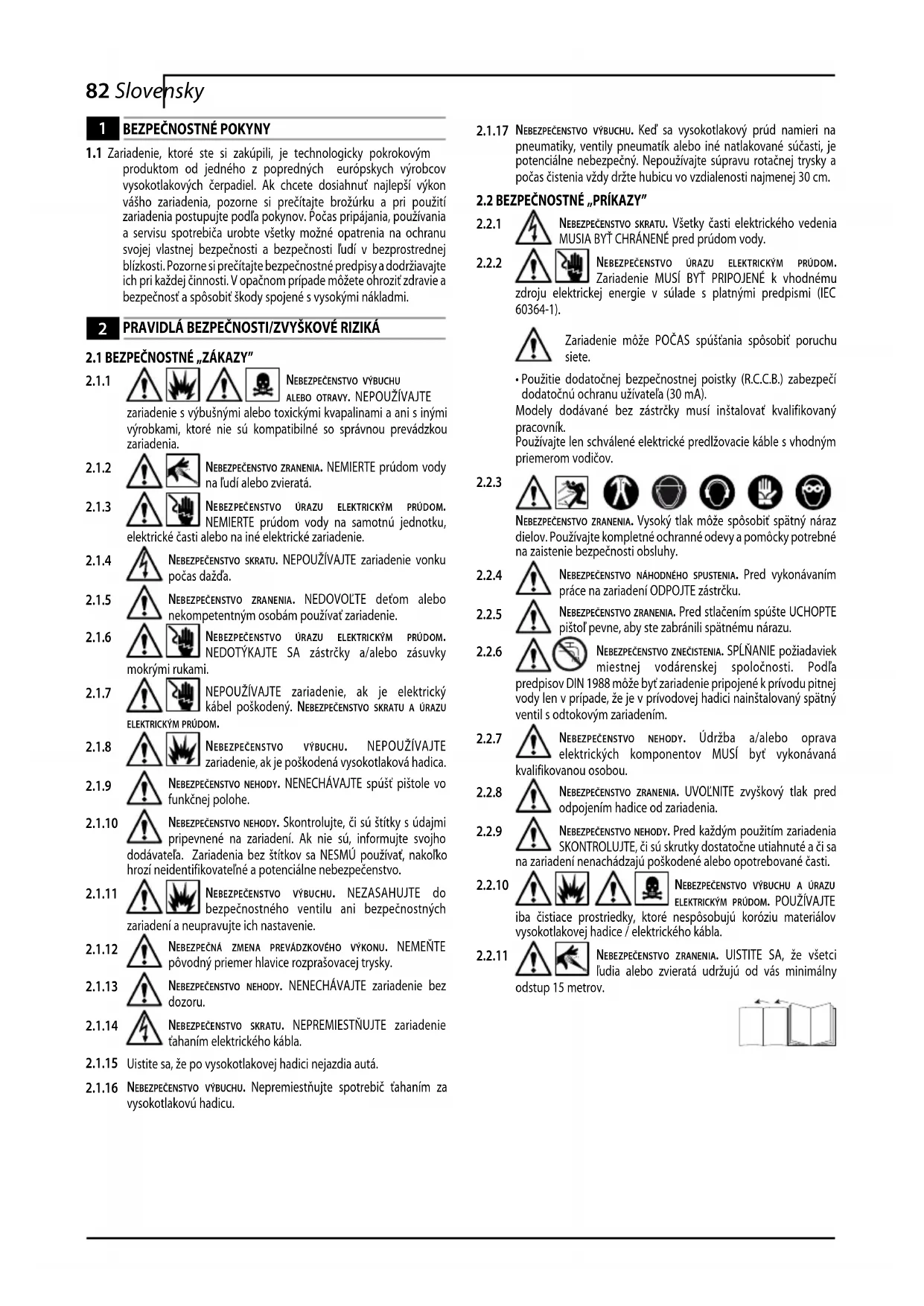 produktom od jedného z popredných európskych výrobcov vysokotlakových čerpadiel. Ak chcete dosiahnuť najlepší výkon vášho zariadenia, pozorne si prečítajte brožúrku a pri použití zariadenia postupujte podľa pokynov. Počas pripájania, používania a servisu spotrebiča urobte všetky možné opatrenia na ochranu svojej vlastnej bezpečnosti a bezpečnosti ľudí v bezprostrednej blízkosti. Pozorne si prečítajte bezpečnostné predpisy a dodržiavajte ich pri každej činnosti. V opačnom prípade môžete ohroziť zdravie a bezpečnosť a spôsobiť škody spojené s vysokými nákladmi.
