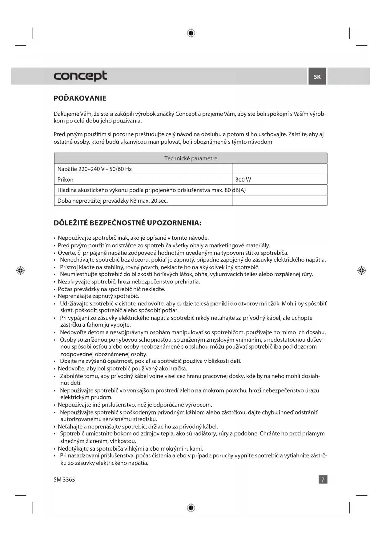 NÁVOD NA OBSLUHU SM3365 Concept