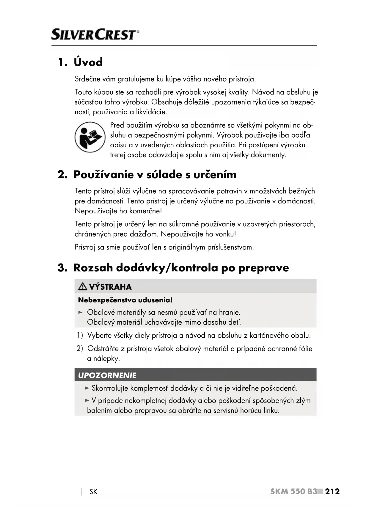 análepky. UPOZORNENIE ► Skontrolujte kompletnosť dodávky ači nie je viditeľne poškodená. ► V prípade nekompletnej dodávky alebo poškodení spôsobených zlým balením alebo prepravou sa obráťte na servisnú horúcu linku.SKM 550 B3 SK
