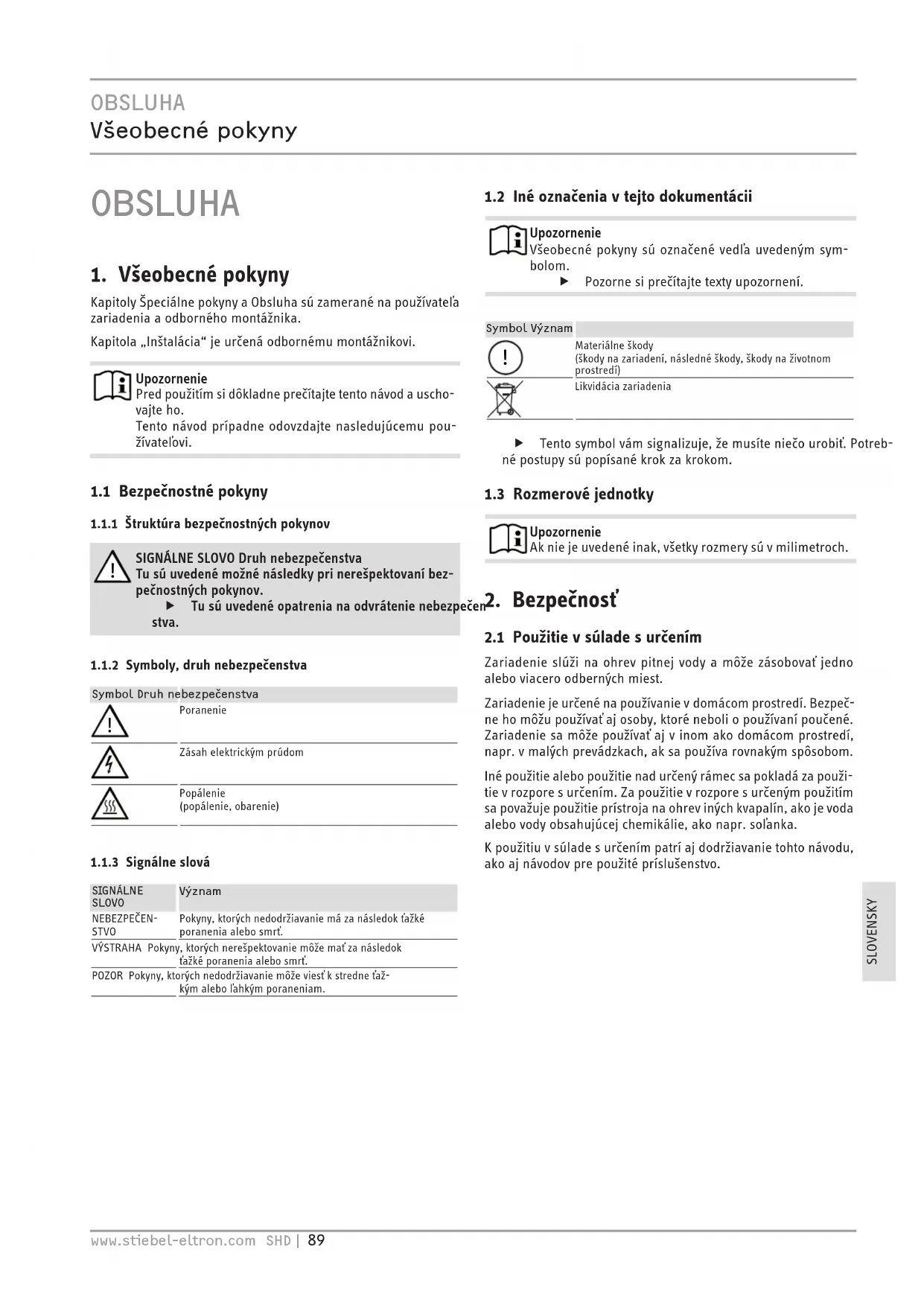 !OBSLUHA Popis zariadenia 90 | SHD www.stiebel-eltron.com
