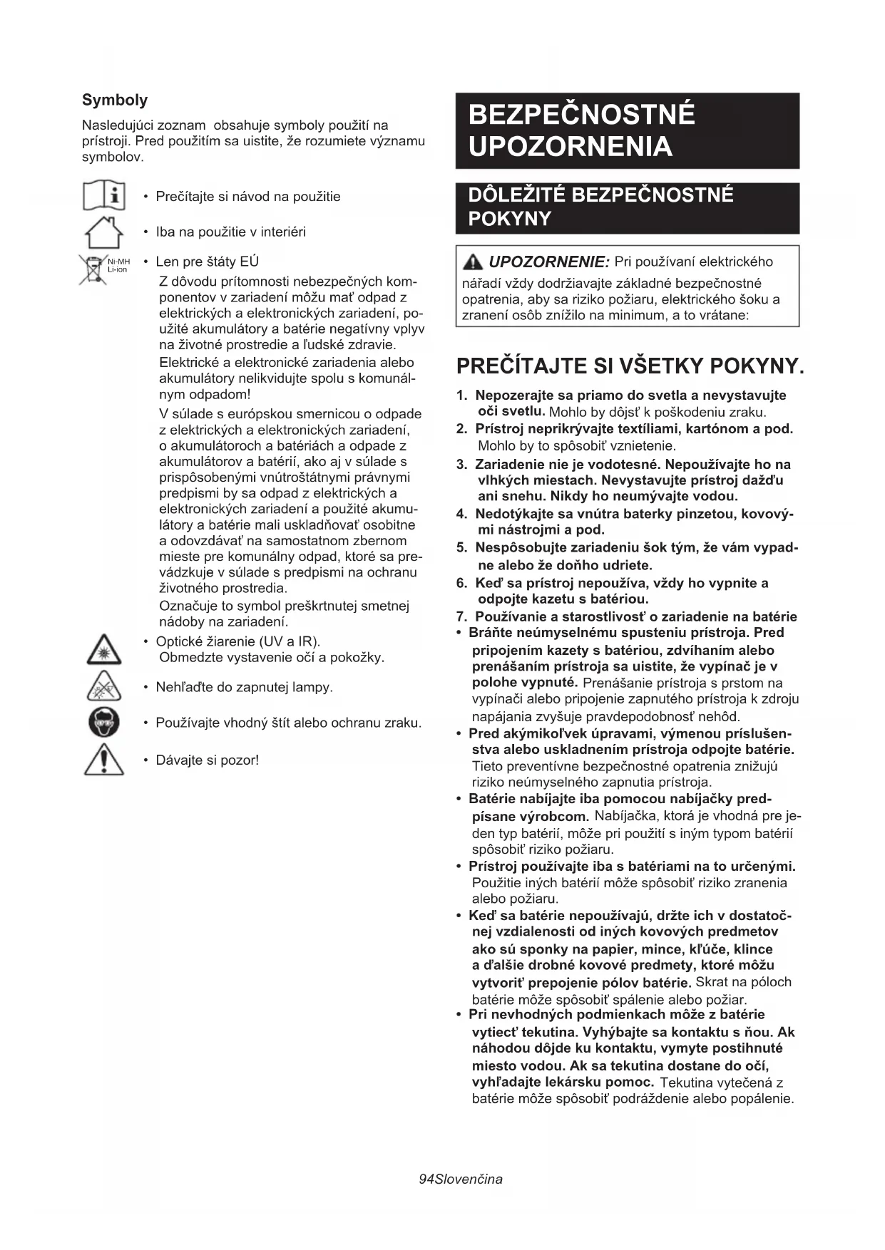 alebo jeho servisný zástupca alebo iná kvaliko- vaná osoba. Dôležité bezpečnostné pokyny pre kazetu s batériou