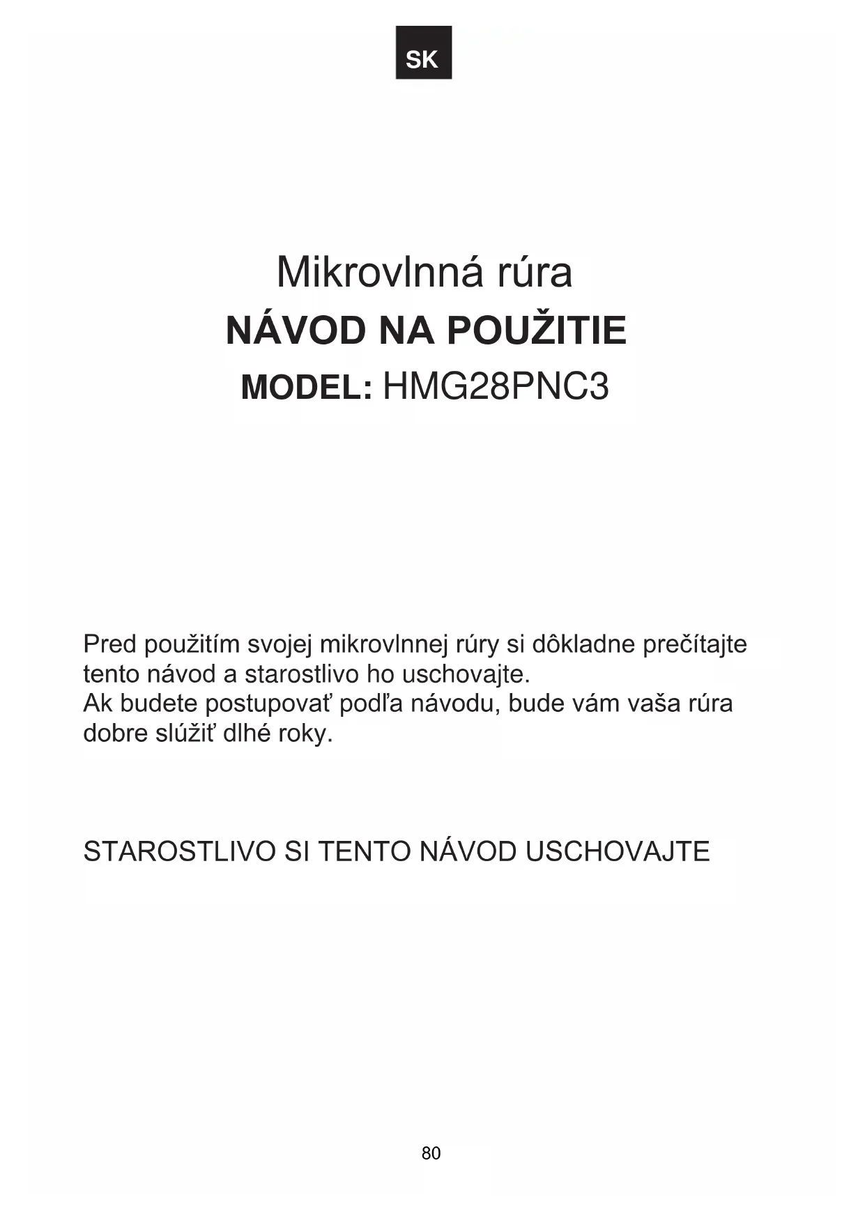 Pred použitím svojej mikrovlnnej rúry si dôkladne prečítajte tento návod a starostlivo ho uschovajte. Ak budete postupovať podľa návodu, bude vám vaša rúra dobre slúžiť dlhé roky.