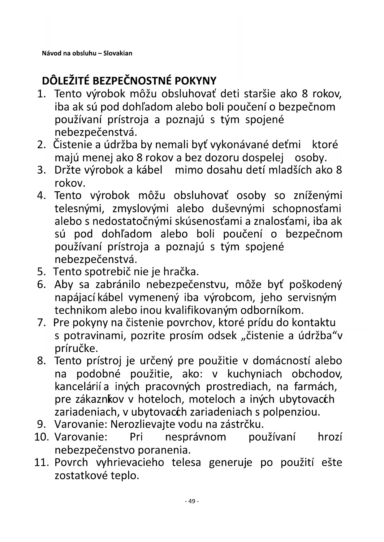 8. Tento prístroj je určený pre použitie v domácností alebo