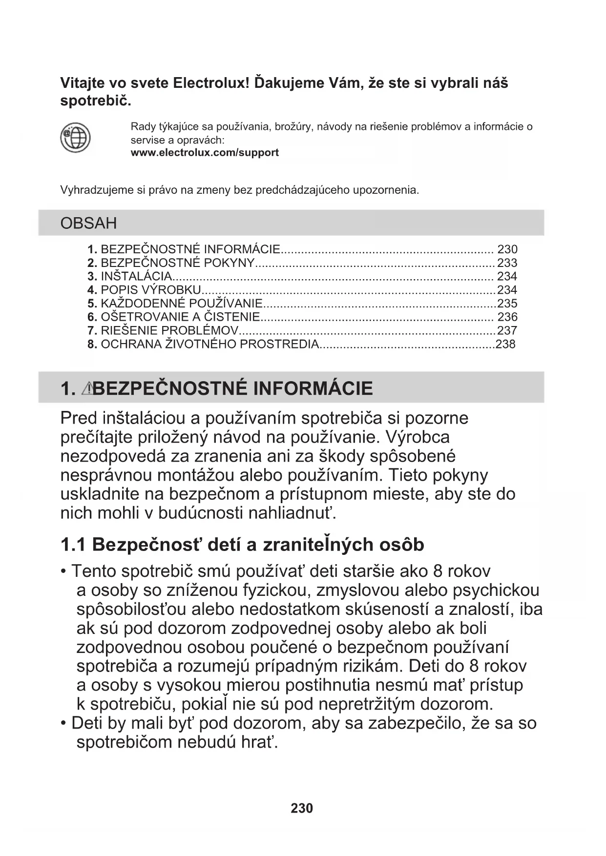 - Deti by mali byť pod dozorom, aby sa zabezpečilo, že sa so spotrebičom nebudú hrať. 230• Obaly vždy uschovajte mimo dosah detí a náležite ich zlikvidujte.