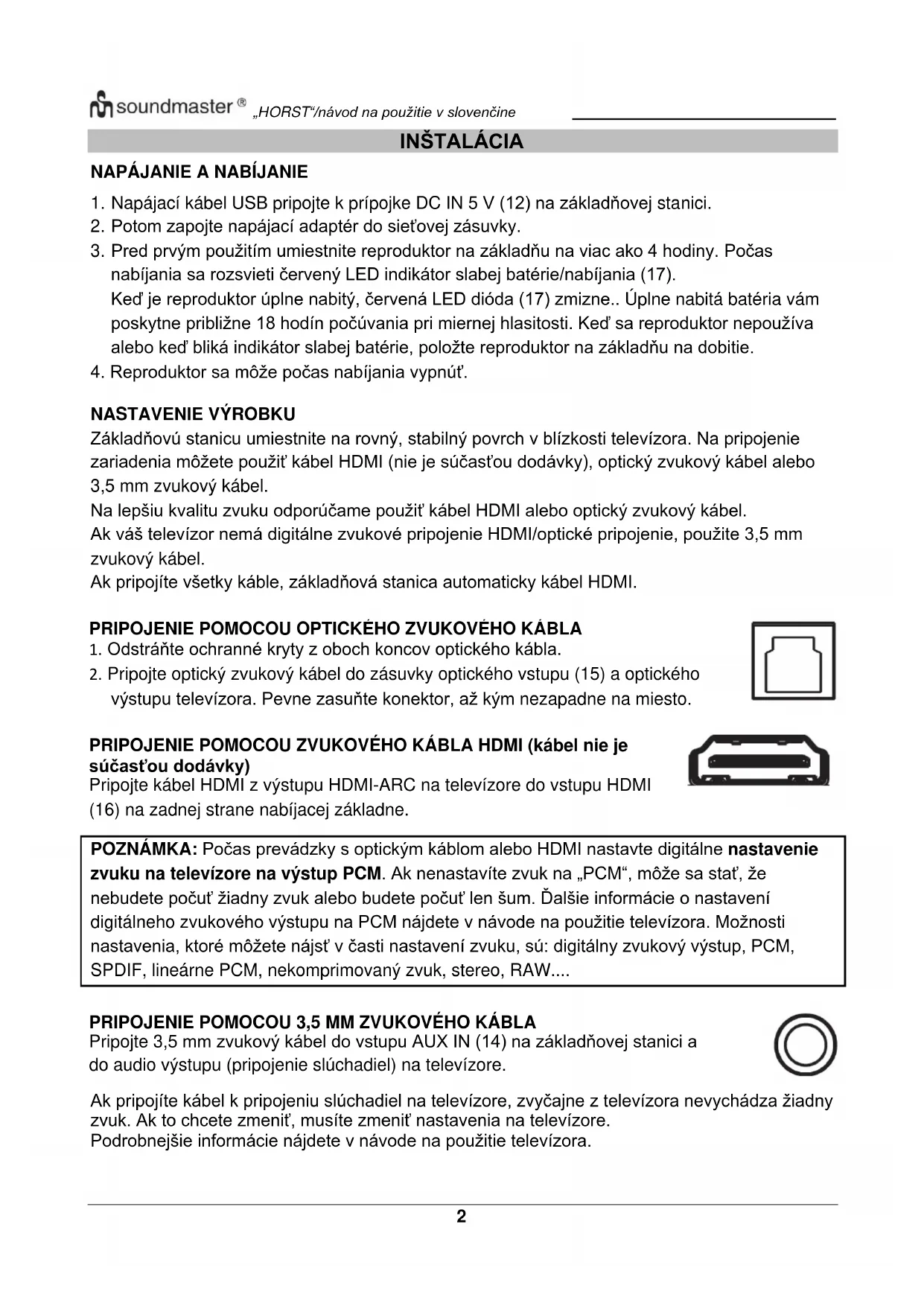 NÁVOD NA OBSLUHU Horst Soundmaster